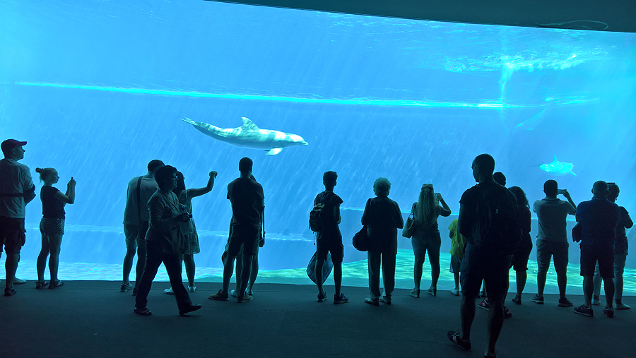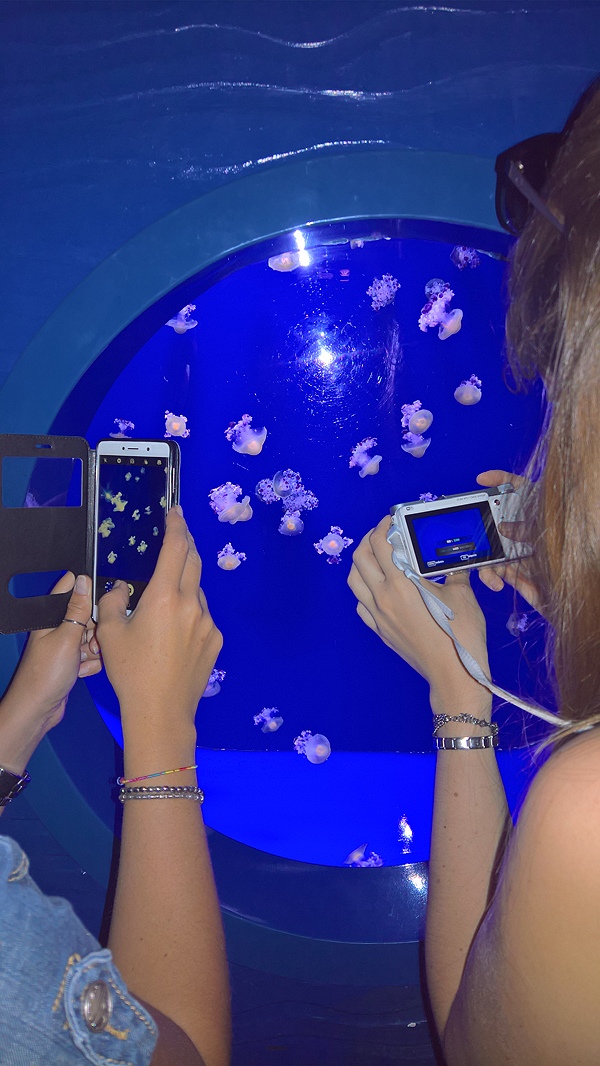 Genujos akvariume, kuris tituluojamas kaip didžiausias - nežinau, kur didžiausias - Europoj? Na, nieko toks. Tik begalė žmonių fotkinančių su telefonais, mažas akvariumukas ir 10 žmonių, befotkinančių jį visai užstoja... Jie apsiformina, tada gali prieit pažiūrėt.