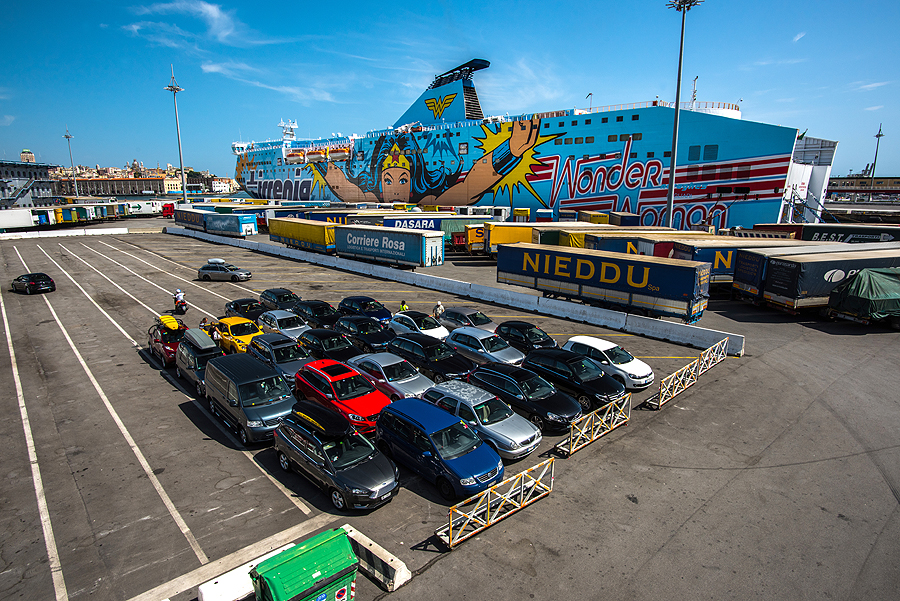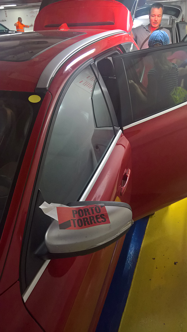 Ateina 16 valanda - jau galime palikti mašiną eilėje į keltą. Info perkant kelto bilietus - jokios, nei kada atvažiuoti reikia, nei kada mašiną atiduoti. Tai va - mašiną atiduoti apie 16-17 val, pačius žmones įleidžia nuo 19 val, keltas išplaukia apie 20,30 ir 8,30 ryte jau būni vietoje - Sardinijoje.