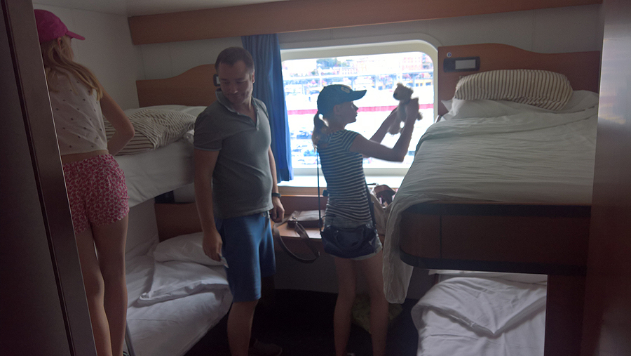 Kelte apžiūrim ir ištestuojam bariukus, visur daug žmonių, ilgos eilės. Vienas baro tipo, kitas - kitam laivo gale restorano tipo su šiltais patiekalais. Kai kurie žmonės susiruošę miegoti ne kajutėse - nuošalesnėse vietose pilna pripučiamų čiužinių. Mes smingam gan anksti - vis tik naktis nemiegota.
