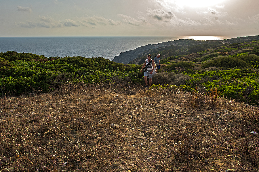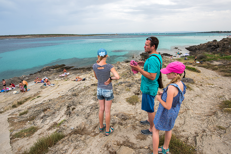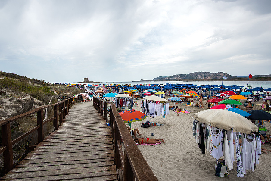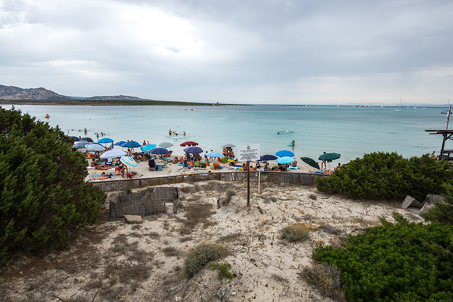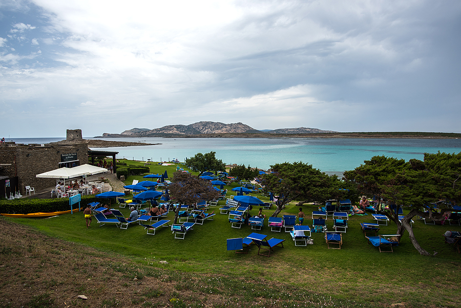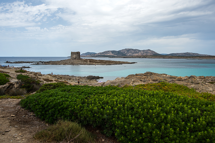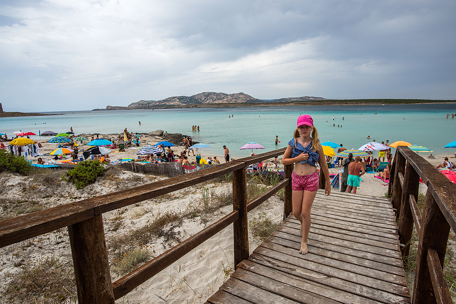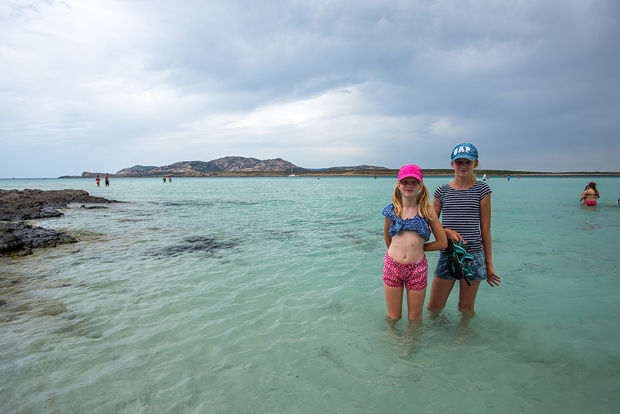 Susipakuojam į mašiną, važiuojam link Stintino ir dar toliau - link garsiojo La Pelosa paplūdimio. Čia - lėtas gilėjimas ir žydras vanduo. Saulės nėra, žydrumos nelabai matosi... šiltas. Grįšim čia dar ne kartą.