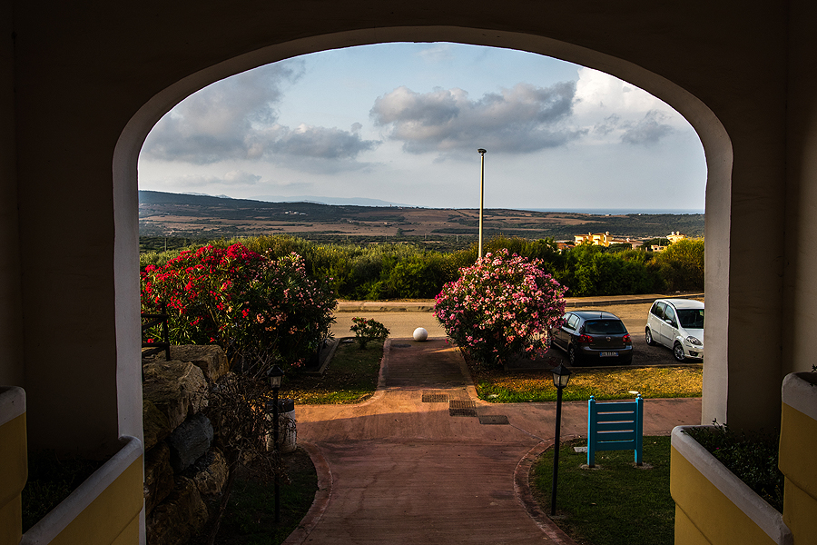 Tolumoje matosi miestelis - iš tikrųjų didelis viešbučio kompleksas, netoli mūsų apsistojimo vietos, nuosavų idiliškų vilų rajonėlio Punta de Su Turrione.
