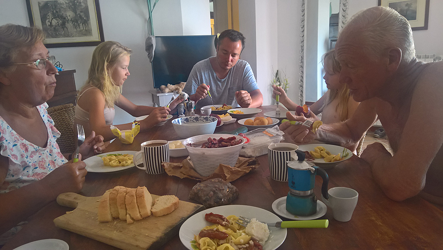 Šį rytą valgome pusryčius kartu paskutinį kartą - uošviai išvažiuoja Lietuvon. Vietinės gėrybės - apsivalgymas!