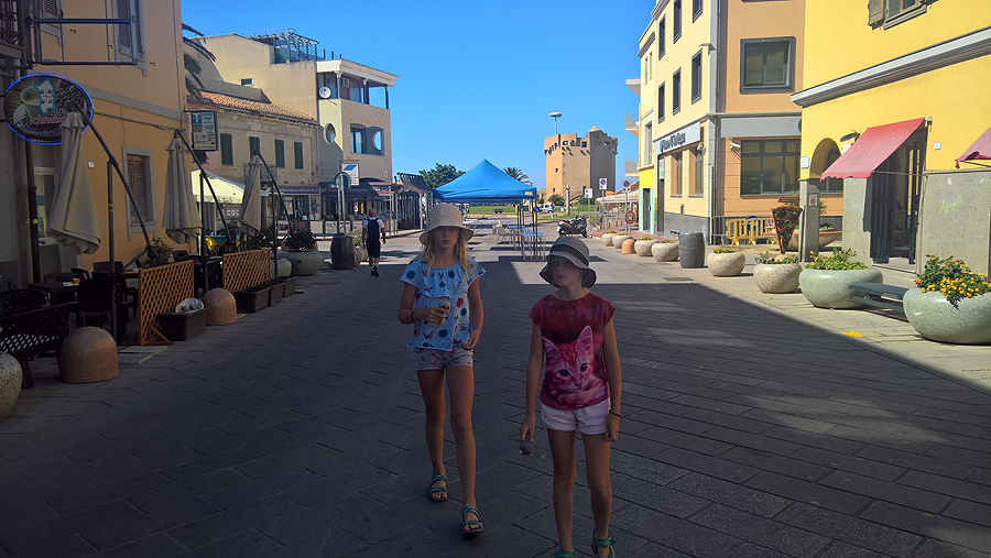 Mūsų keltas plaukia iš Porto Torres. Kadangi savo laikinus namus turime priduoti anksti, vėl, kaip ir Genujoje, turime laisvą bastymosi netoli kelto dieną. Ją praleidžiame Porto Torres ir šalia esančiame pliaže.