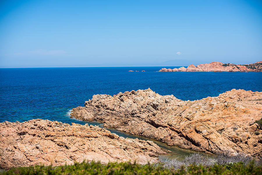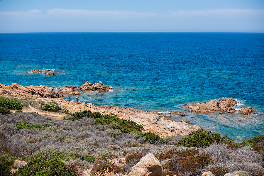 Matosi jau Isola Rossa mažas miesteliukas ir salos šalia jos.