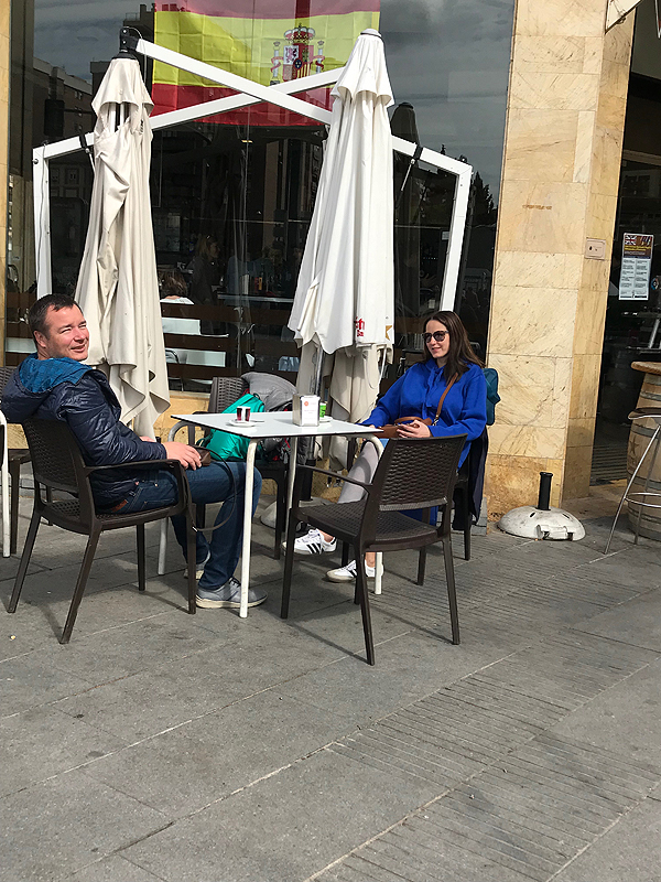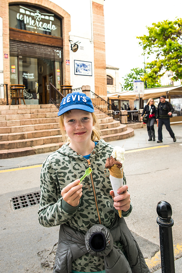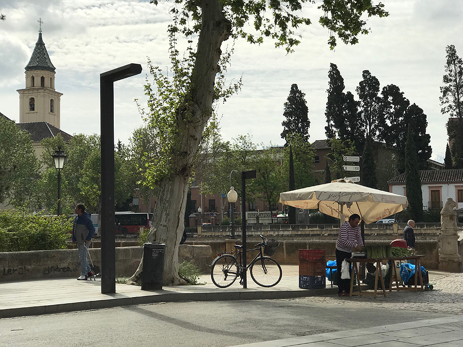 Ryte Granadoje nebegaištam - keliamės, priduodam raktus automatinei registravimosi sistemai su nuotykiais (įmetėm raktą ne į tą skylę, ir jis užstrigo) ir bildėdami lagaminais keliaujame per visą Granados centrą link mašinos. Prie pat parkingo išgeriam kavos ir šviežiai spaustų sulčių kavinukėje.