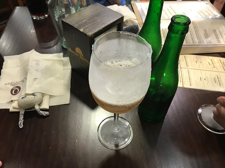 Sėdam, gaunam užšaldytas ir apdruskintas alaus taures - kaip skanuuu! Pirmą ir vienintelį kartą čia taip mus palepino per visas atostogas.