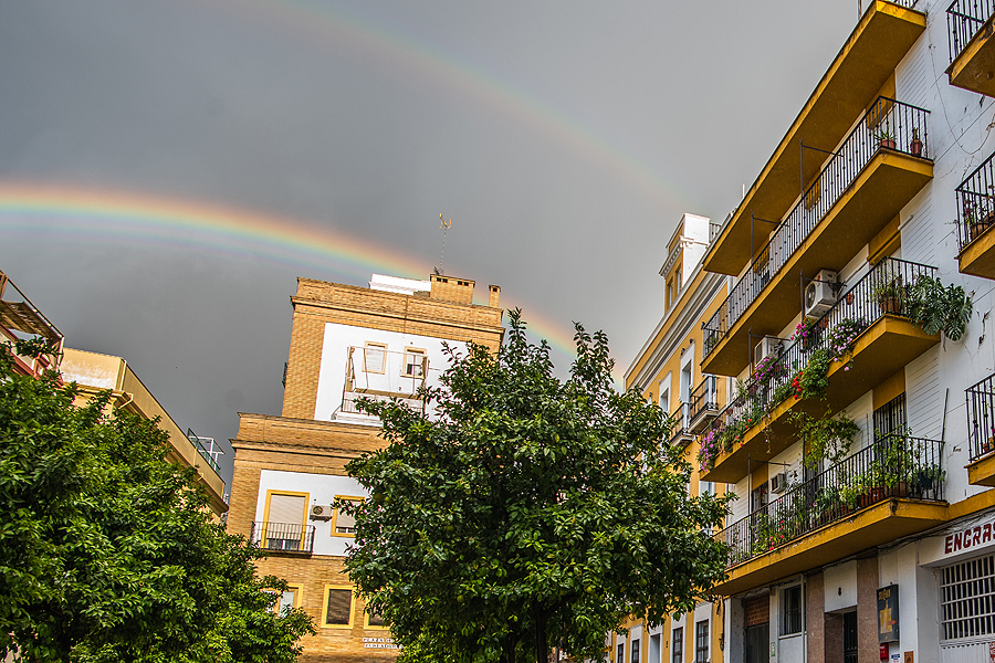 Čia fotografavau balkoniukus, ir tik atsidarius nuotrauką kompe, pastebėjau kokia nereali buvo vaivorykštė!