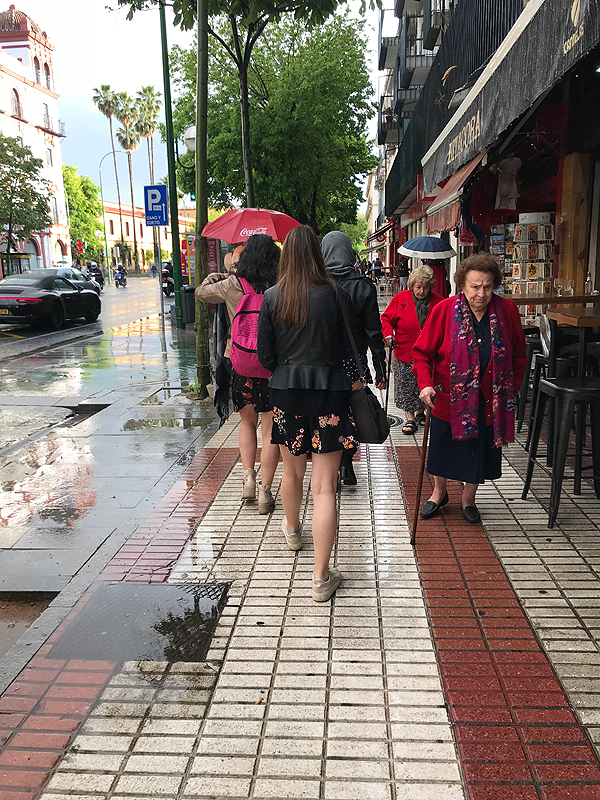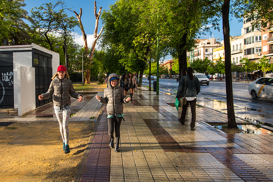 Sevilijoje užsakiau prabangų viešbutį, ant kurio stogo yra baseinas - masalas mūsų vaikams. Bevažiuodama booking lapuose perskaičiau, kad baseinas veikia tik vasarą... Hm. Žinoma, oras irgi nelepina, mūsų atvažiavimo datomis karščiausias Europos miestas Sevilija - šaltesnis, nei Kaunas - plius 18-20 ir su lietum. Mano nuotaika “sėda”. Juo labiau, kad į savaitės galą vėl grįš čia šiluma, tik mūsų jau čia nebus.