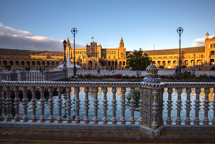 Ir įėjus į Ispanijos aikštę, užgniaužė kvapą. Didelė, įspūdinga erdvė, karališki (ne realiai, o iš vaizdo) rūmai su begale puošybos, baseinėliai, tiltukai, fontanai...