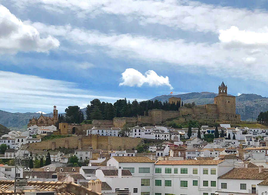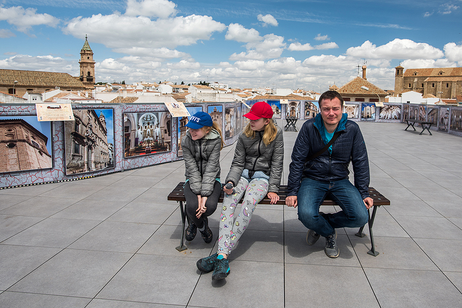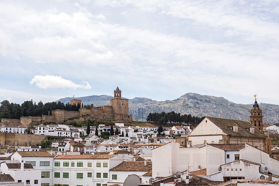 Grįžtam į mūsų atostogas. Važiuojam į miestelį, o jis gražus, daug bažnyčių, ant kalno - Alcazaba (arabiškai citadelė). Užmatom parkingo ženklą su 360 laipsnių "Mirador" - apžvalgos aikštele. Puiku, to mums ir reikia! Pasistatome mašiną, užlipam ant parkingo stogo ir Antequera vaizdai visi kaip ant delno.