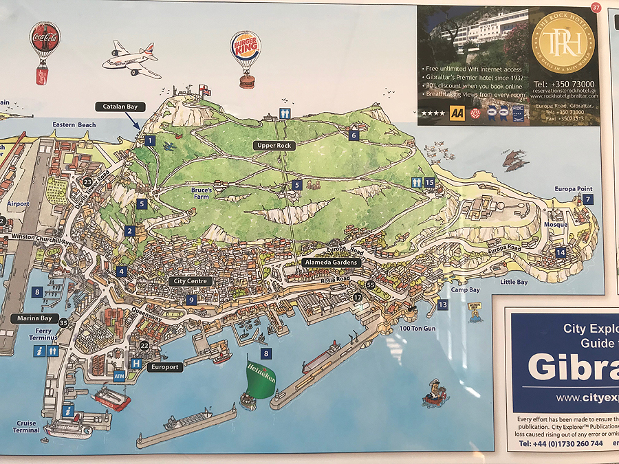 Visa žaluma - kalne. Princo Ferdinando patranka dar matosi - gal kokia relikvija iš kovų su ispanais. Kažkada seniau Ispanija norėjo susigrąžinti savo žemes, padarė referendumą Gibraltare ir gyventojai nubalsavo, kad palikti viską, kaip yra - žemė ir toliau lieka Anglijos kolonija.