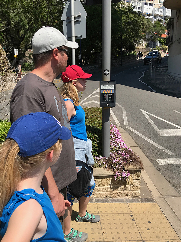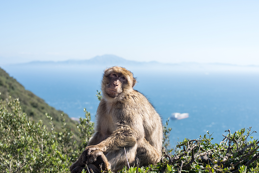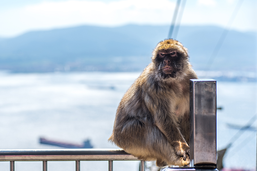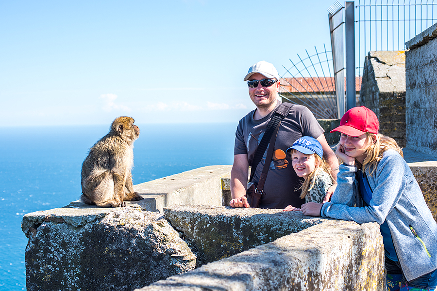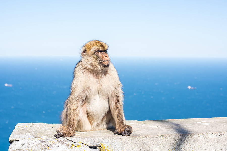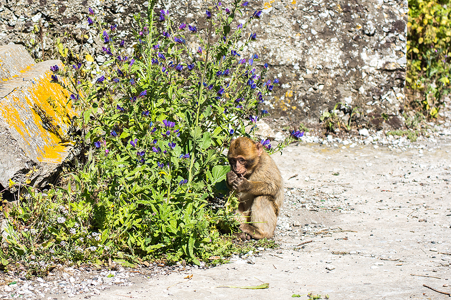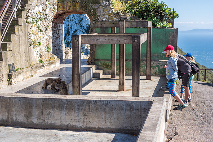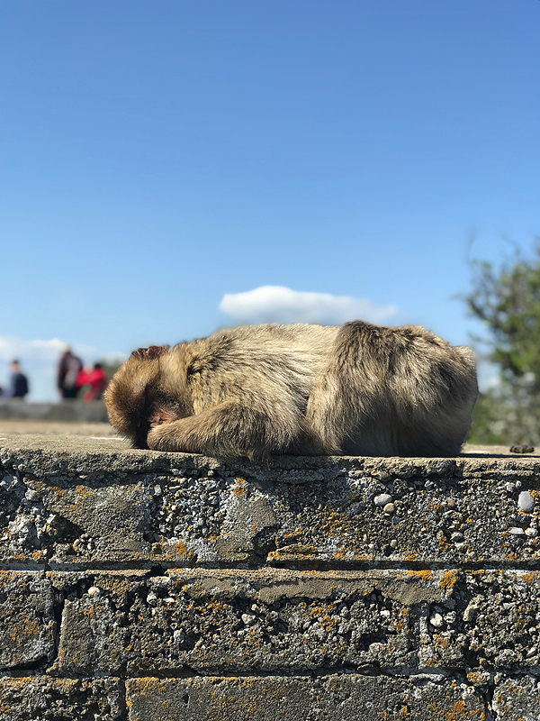 Išlipus iš keltuvo pasitinka štai toks dėdė. Oi, bus linksma! Atrodo, dėl beždžionių nemelavo. Paskui perskaičiau, kad gyvūnai per pirmąjį pasaulinį karą buvo beveik išnykę, bet Vinstonas Čerčilis įsakė atgabenti jų papildomai iš Afrikos, kad vieta neprarastų savo unikalumo. Dabar pastoviai palaikomas beždžionėlių skaičius apie 200.
