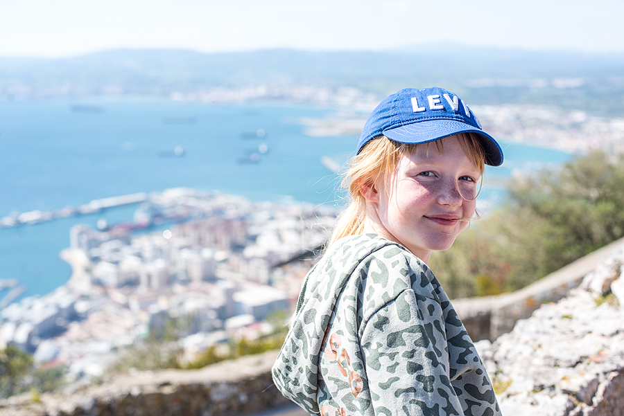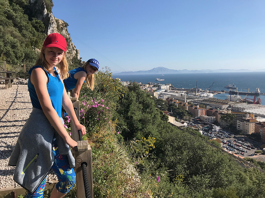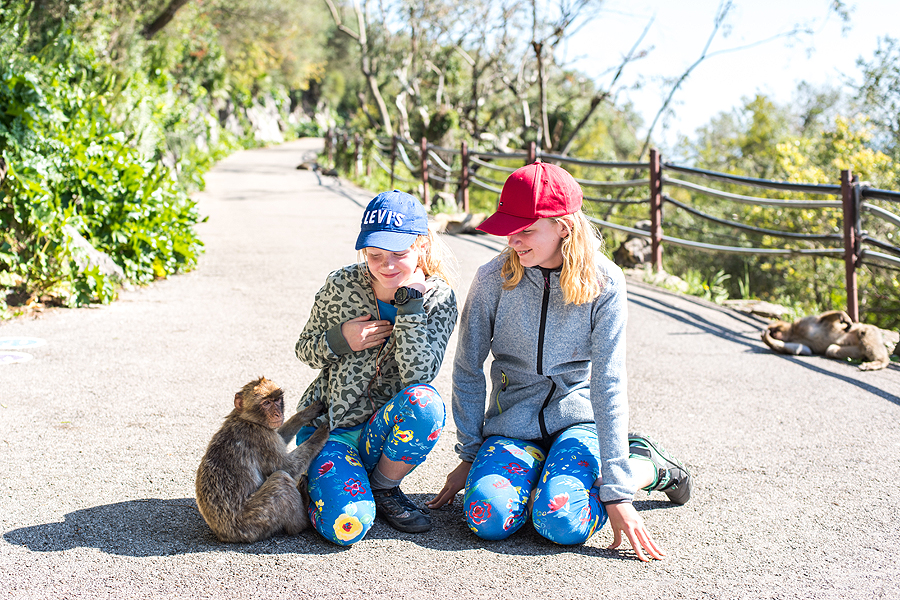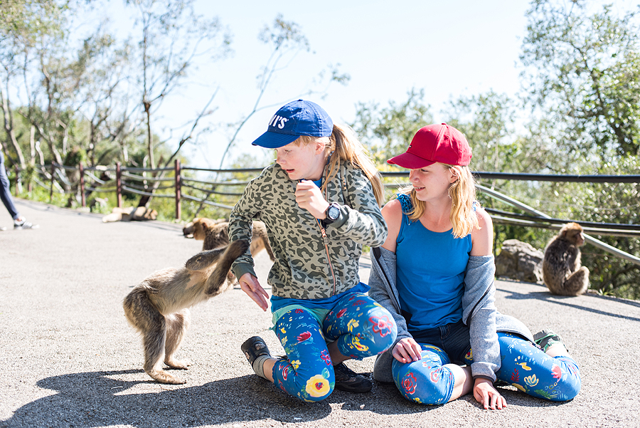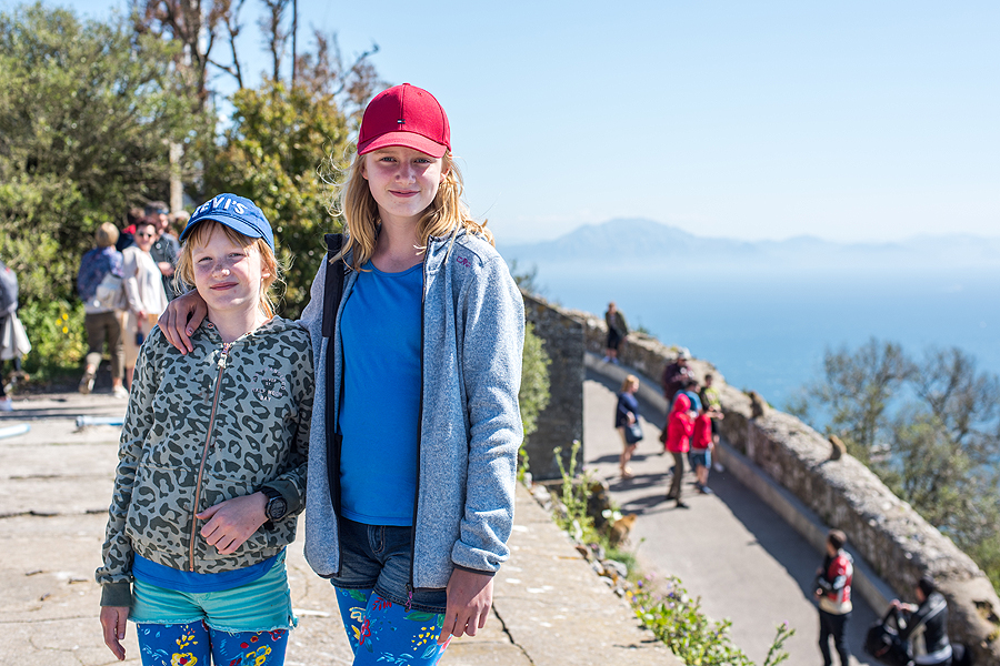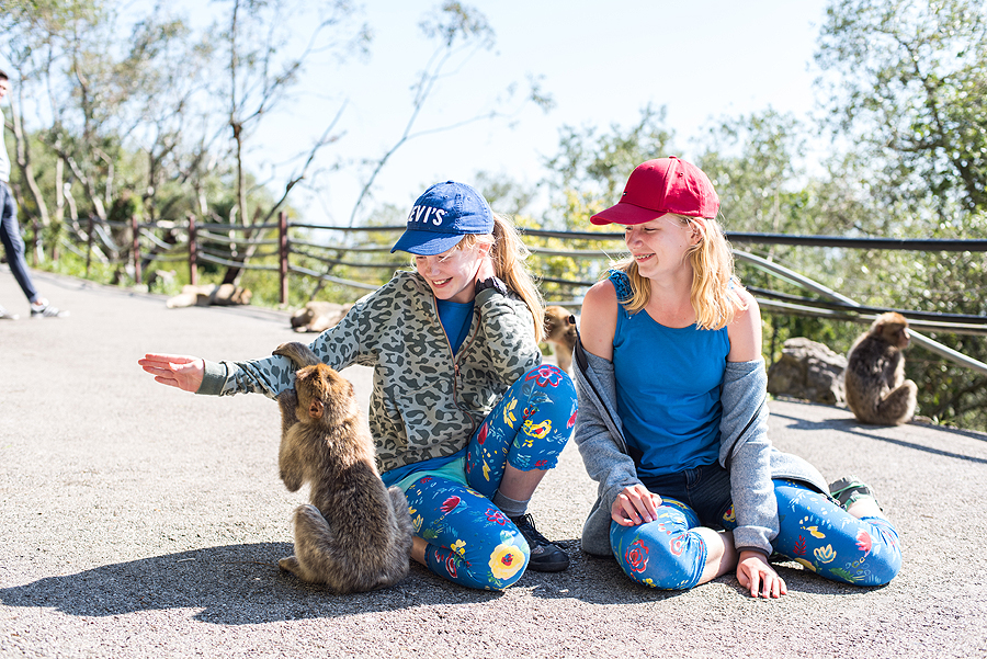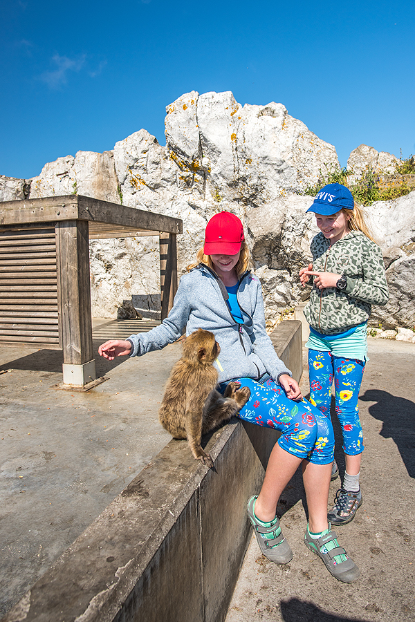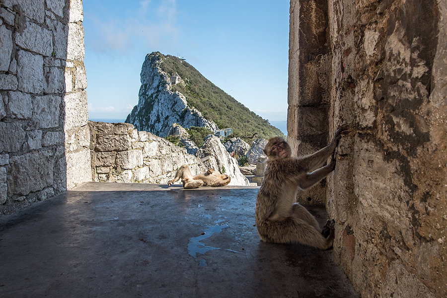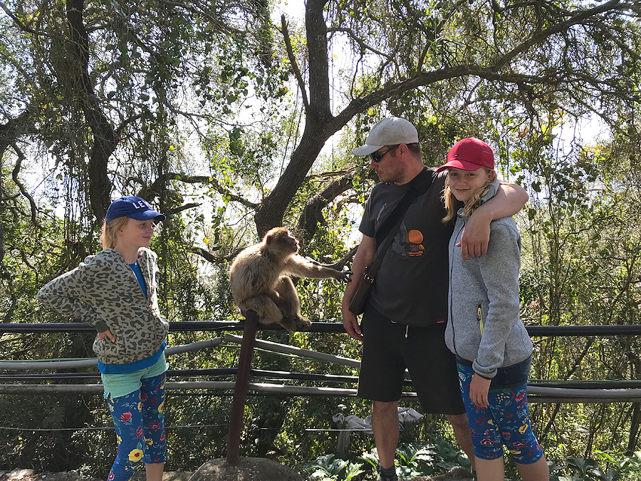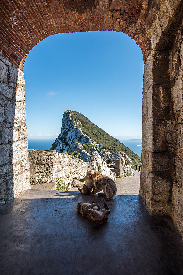 Žaidimas Gibraltaro uolos fone. Čia, befotografuojant, pro šalį, kliudydama mano šoną, praeina beždžionė - didoka, pajaučiu jos jėgą ir spygteliu žaibiškai stodamasi ir čiupinėdama rankinę. Fuuuu!... Išsigandau.