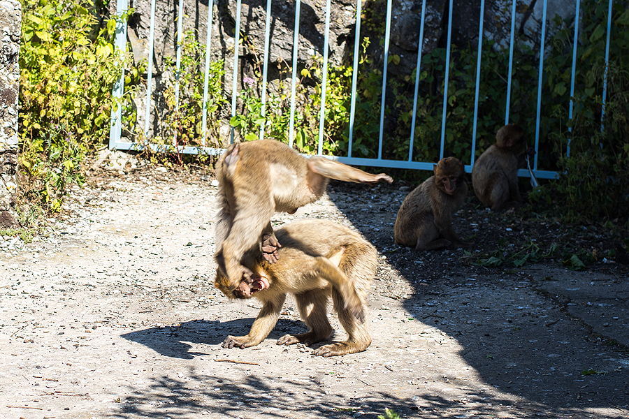 Tada nežinodami kas toliau, nardome tarp mašinų, spoksom, ieškom parkingo. Galų gale randam kažkokį, atsikratom mašinos ir ieškom kur čia viskas yr - beždžionės, arabiška mečetė, urvai kažkokie ir t.t. Taigi - TURISTINIAI DALYKAI YRA ANT KALNO! Beždžionės laisvos - irgi.
