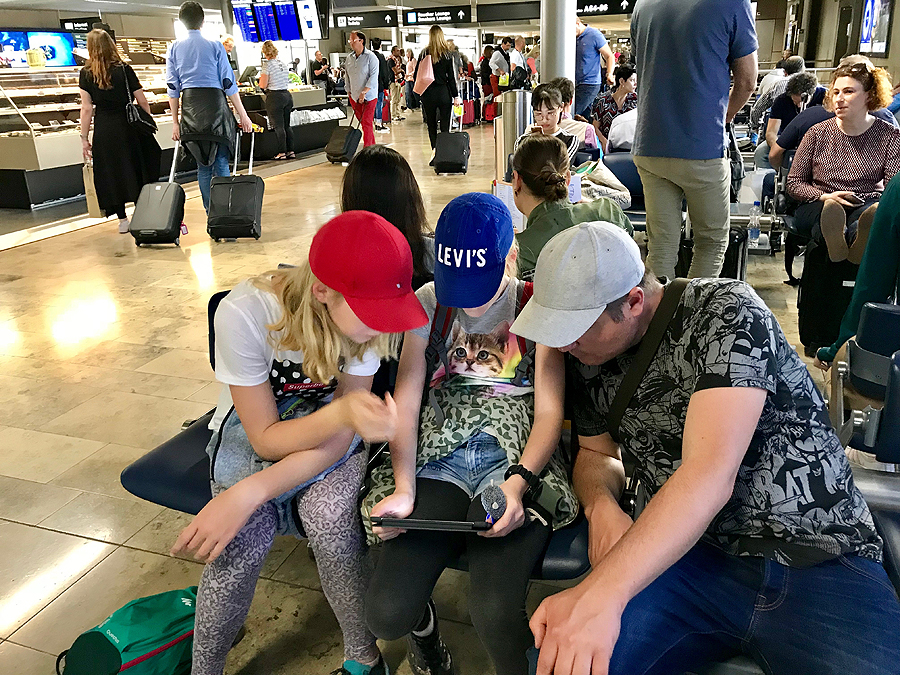 Kai galų gale išleidžia, žmonės bėgte bėga iki info lentos, klausinėja darbuotojų, tos rodo kur eit jau nubėgantiem žmonėm.