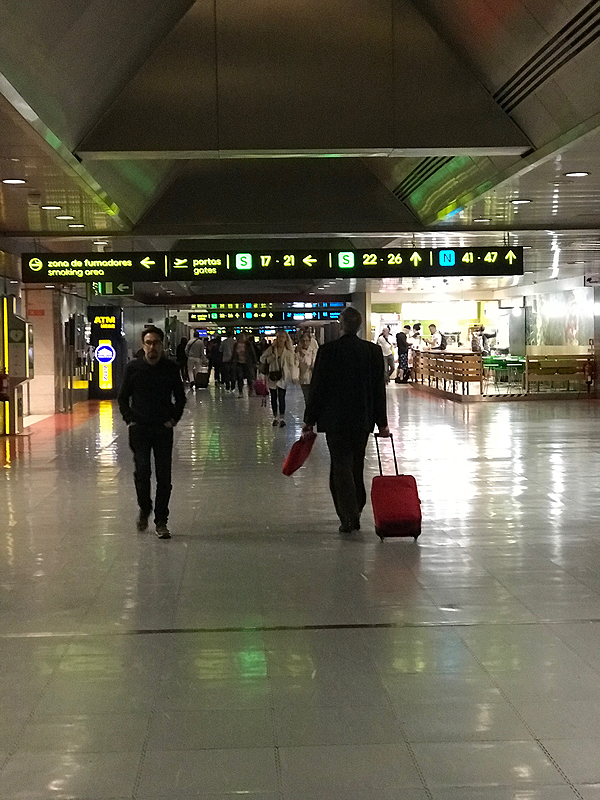 Sėdim Ciuricho oro uoste. Pirmąkart skrisim TAP AirPortugal. Mūsų lėktuvas į Lisaboną vėluoja 40min! Žiūriu, ar spėsim persėst skrydžiui į Malagą - spėsim, jei pirmasis daugiau nevėluos. Pasirodo, problemų su pirmo lėktuvo vėlavimu neturime visiškai, nes vėluoja ir antras TAPAir Portugal lėktuvas. Kai jau autobusu važiuojam iš lėktuvo į Lisabonos oro uostą, jis sustoja, laukia… pusvalandį vėlavęs, dar apie 10 min stovi Lisabonos oro uoste... susikišę autobuse laukiam, laukiam... o Lisabona - daugumai žmonių tik tarpinė stotelė per transatlantinius skrydžius... Viena moteris šveicariškai keikia avialinijas ir dievagojasi niekada gyvenime nebeskristi su TAPAir Portugal. Mane ima juokas - yra gi ir bjauresnių už mane, guodžiuos vyrui.