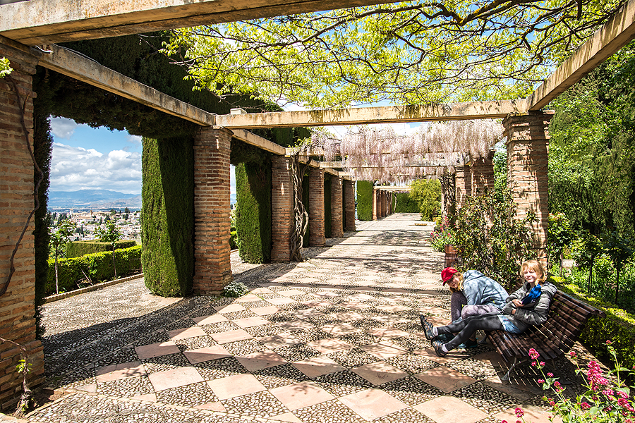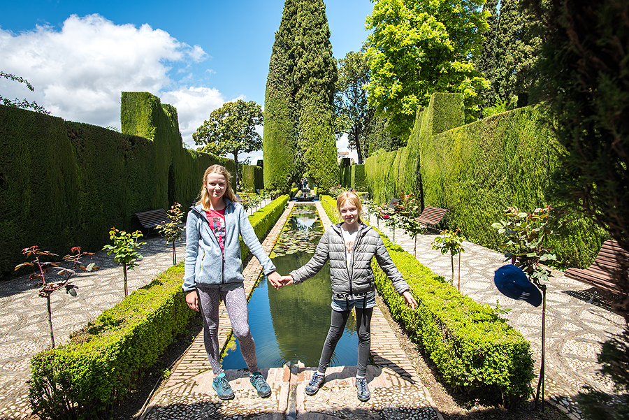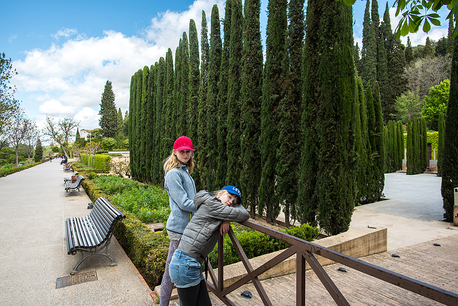 Ir einame trise su vaikais į Generalife sodus. Gaila, jų net visų neapėjome, galiuką nukandome, o rodėsi, kad jau viską matėm. Patarčiau nepagailėt Alhambrai visos dienos... Nuostabiai gražu.