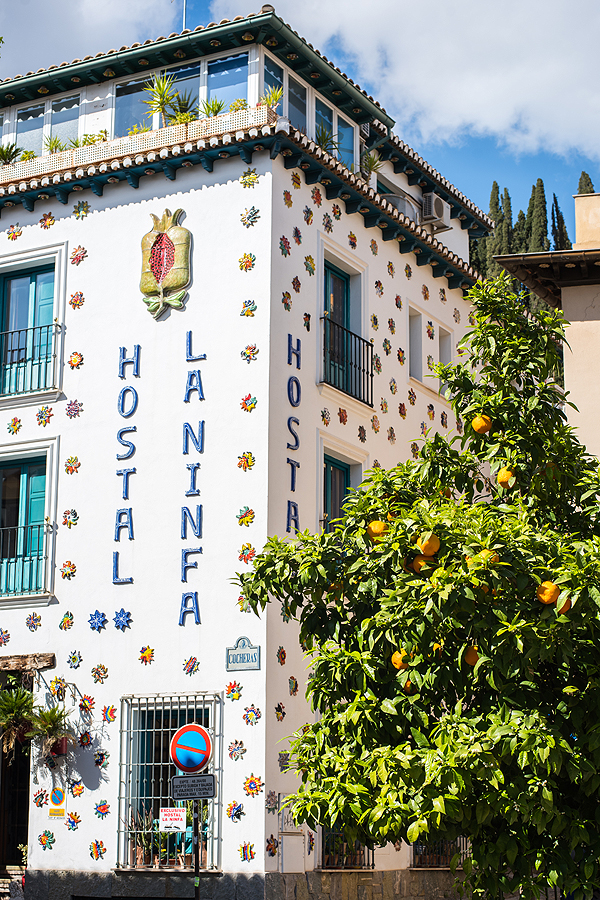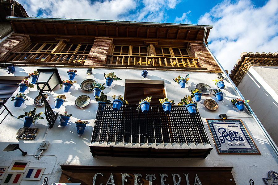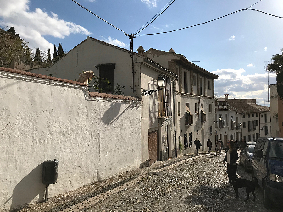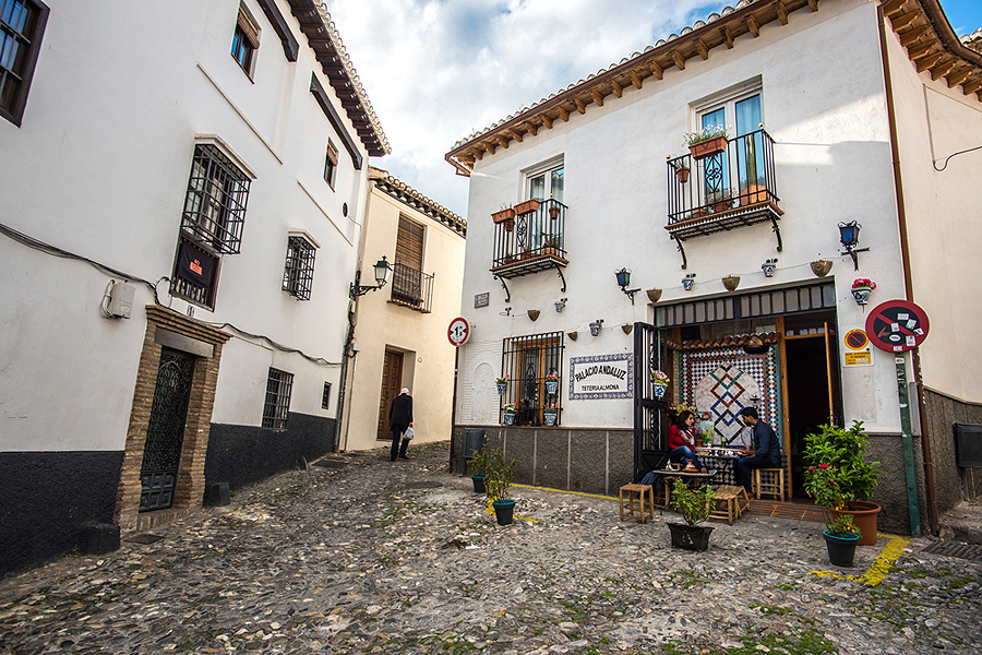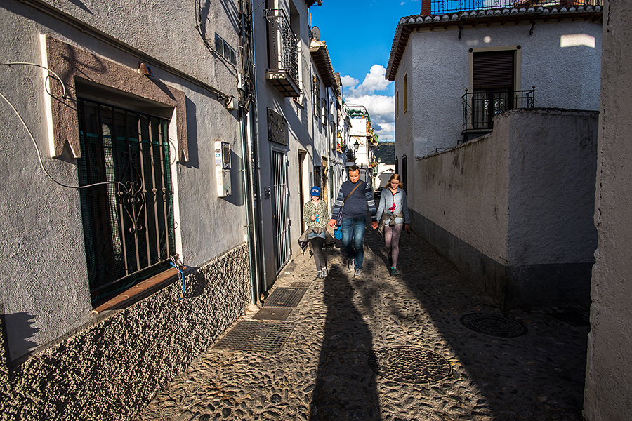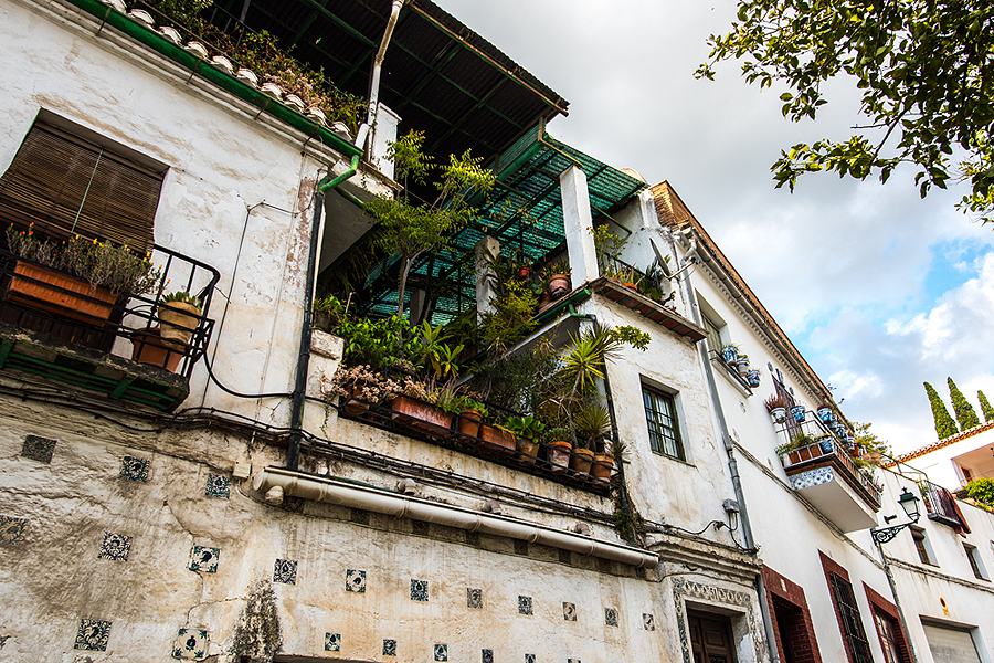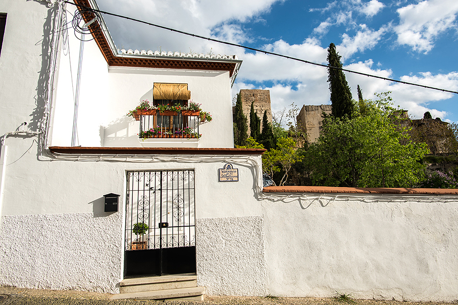 Albaicin rajonėlis kitoks nei apatinė Granada, baltas, išpuoštas gėlėmis. Man labai patiko tie juodi ažūriniai balkoniukai visur Andalūzijoje.
