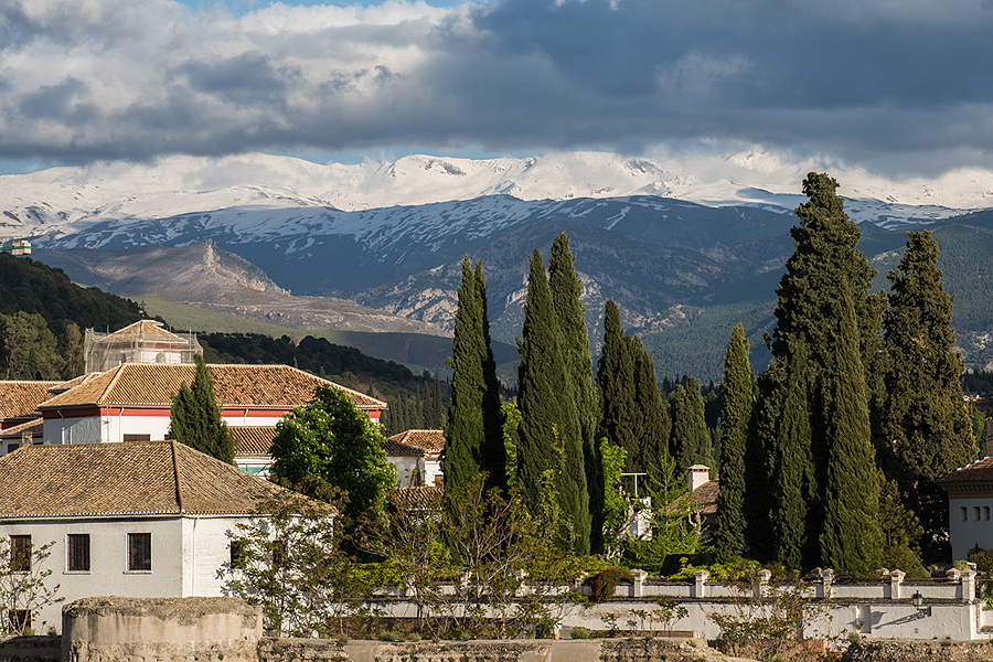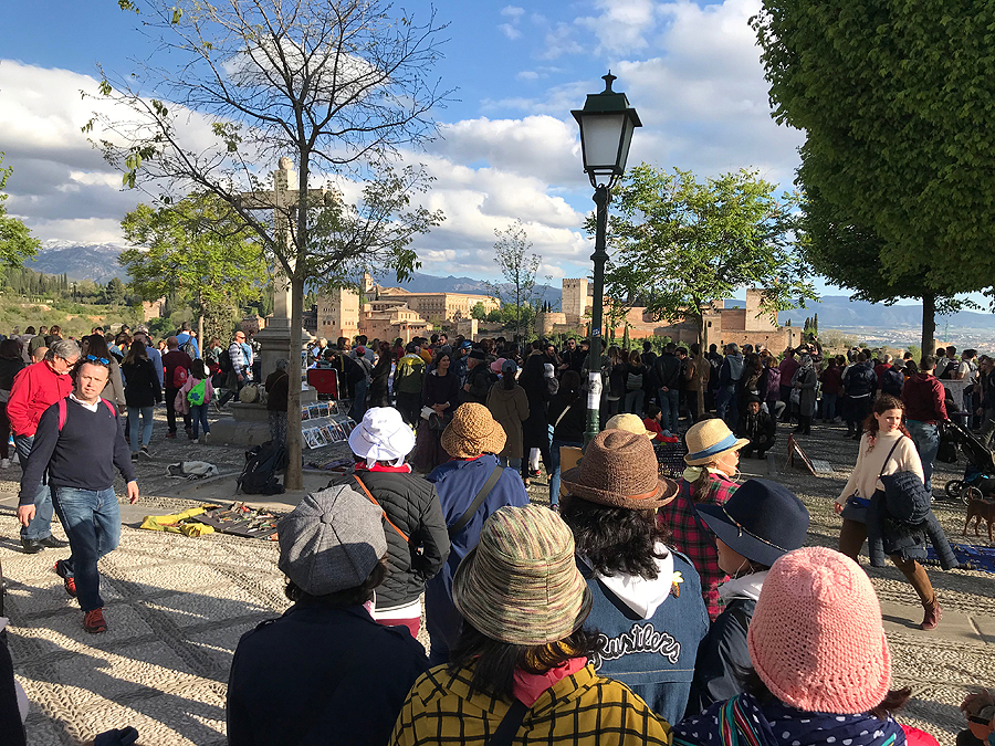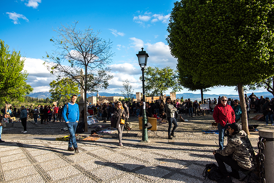 Aplankom persikimšusią aikštę - Mirador San Nicolas, nuo kurios matosi karališkas vaizdas - visa Alhambra pilis ir fone snieguoti Siera Nevada kalnai! Grožis!