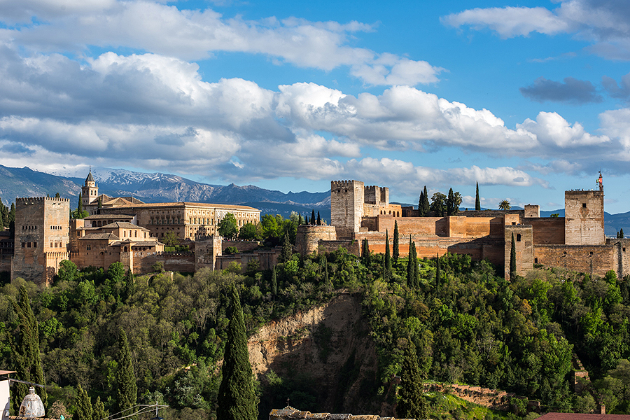 Alhambra arabų kalba reiškia raudonoji pilis. Tisą pasakius susimaišiau tarp tų pavadinimų - Alhambra, Albaicin (rajonas Granadoje), Antequera (miestelis), Alcazaba (pilies dalis), Alcazar (pilis Sevilijoje). Šią pilį 700 metų valdė musulmonai. Ispanai krikščionys su savo karaliene Izabele I priešakyje, 1492 metais išviję visus musulmonus, šią pilį užėmė paskutinę.
