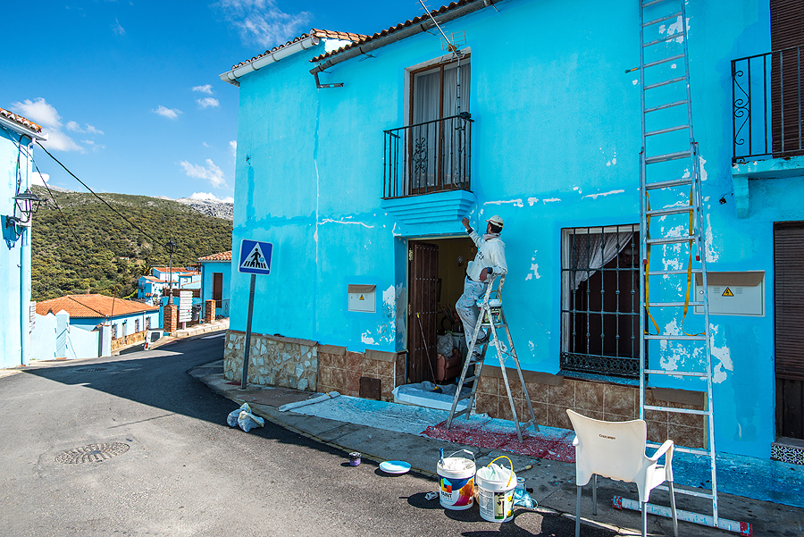 Taigi, Juzcar. Googlemaps susirandu Mirador - vietą, nuo kurios matosi šis vaizdas ir vyrui tenka čia stot.