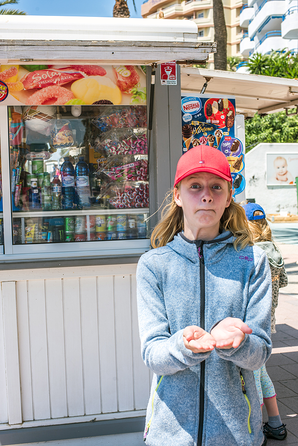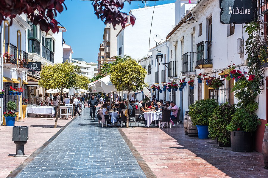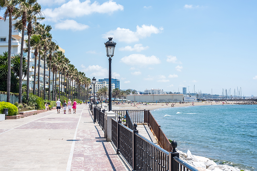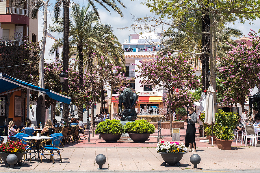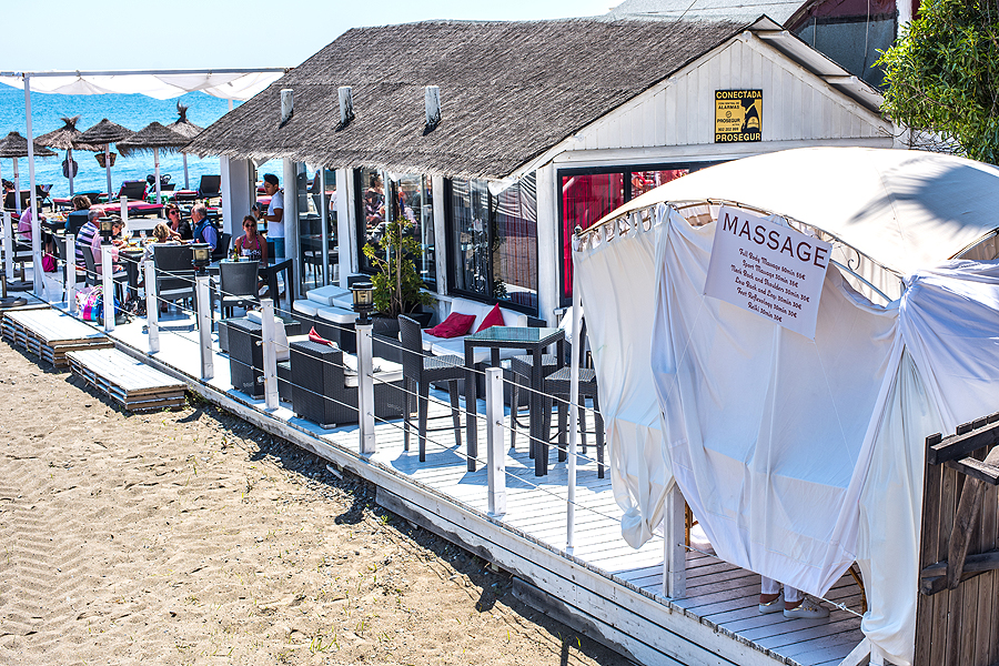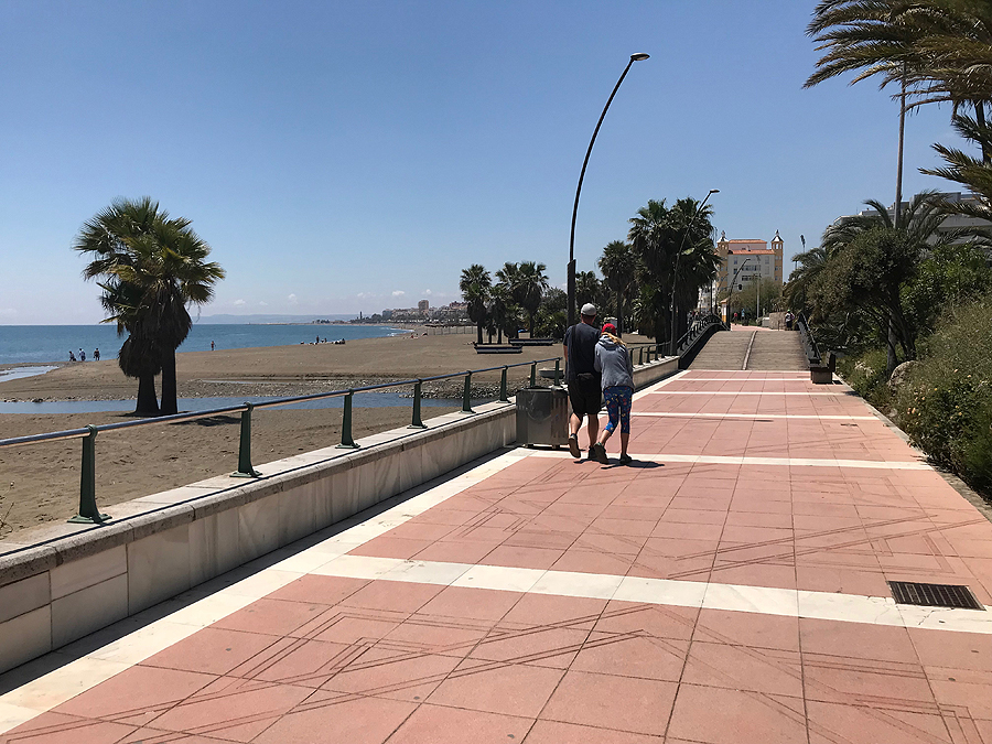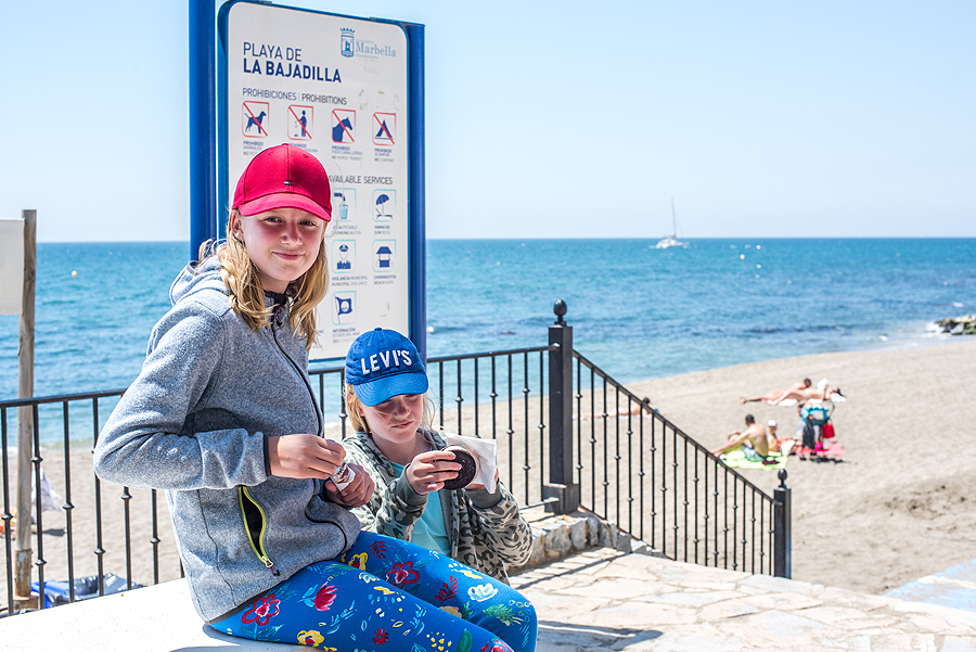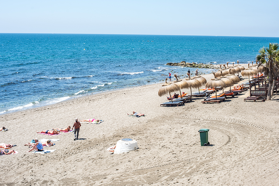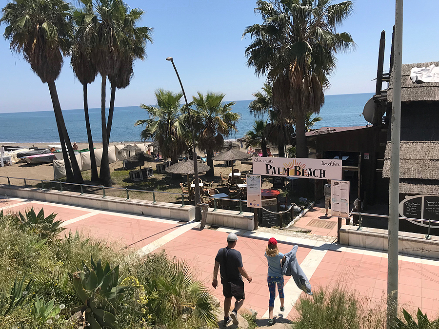 Išlipame Marbelloje požeminiame parkinge ir tik pakilus laipteliais užkalbina vyras, sako "ar jūs kalbate rusiškai?" Mes: "Taip". Tada pradeda, jis vargšas, blablabla, duokit pinigų. Įspūdis jau nekoks. Einame į krantinę, apžiūrėti pliažų. Įspūdis vėl ne koks. Šiukšlina, tamsus nešvarus smėlis, kaip stambus žvyras, paplūdimys platus, kažkokių sandėlių, garažų pristatyta šalia promenados ir pliažo, žmonių dar nedaug, saulė kepina. Pilna visokiausių gyvenamųjų kompleksų viešbučių ir t.t. vienų už kitą gražesnių. Užpavydėjau tik vieniems, sėdintiems džakudzi vonioje netoli promenados esančio viešbučio kieme šalia baseino.