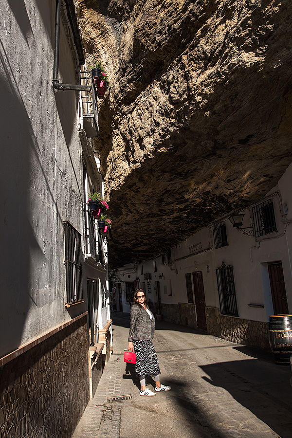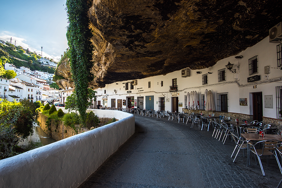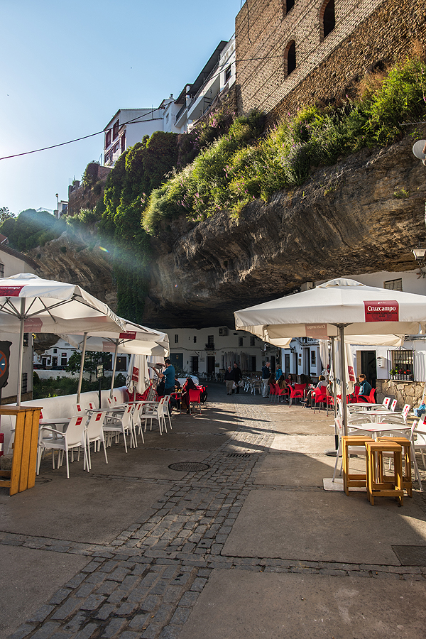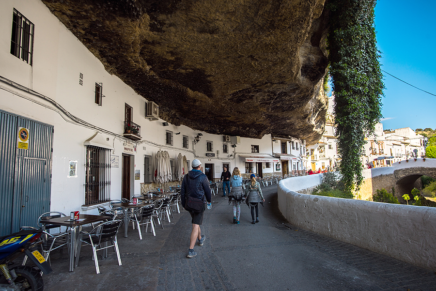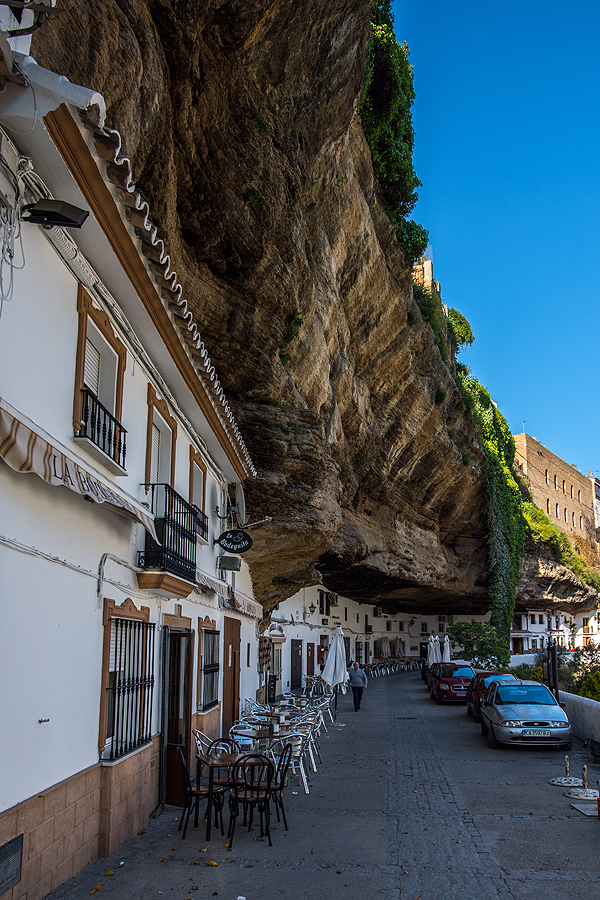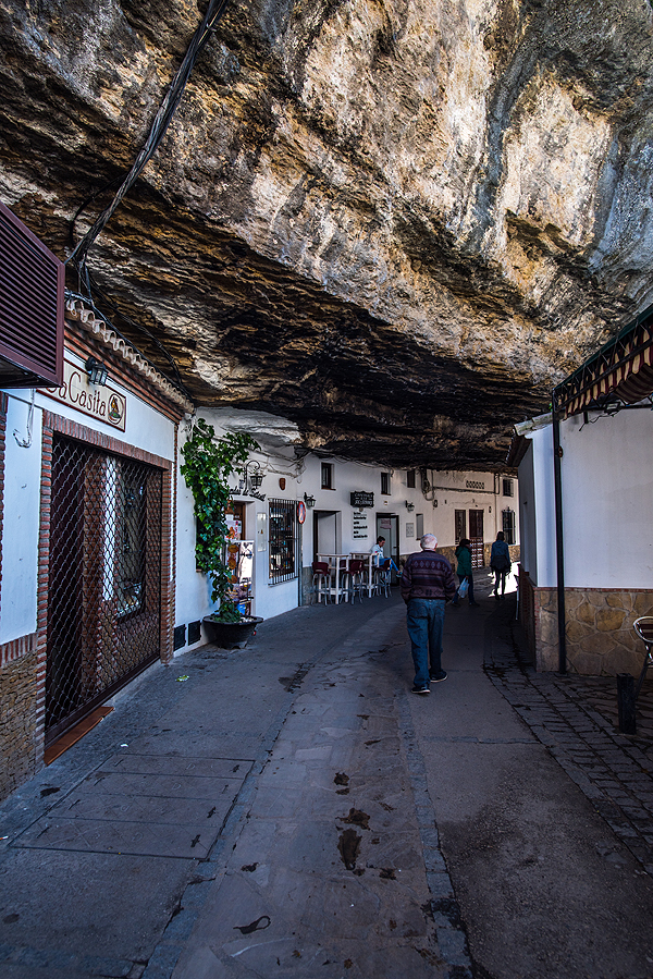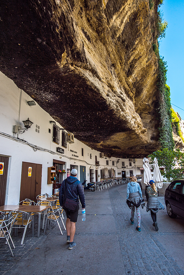 Išsivyniojame pagaliau iš namų į gretimai esantį miestelį Setenil de las Bodegas, žymų tuo, kad didžiuliai akmenys kabo virš namų ir net skersai gatvės. Važiuojame dar tuščiomis, lietaus nuplautomis gatvėmis.