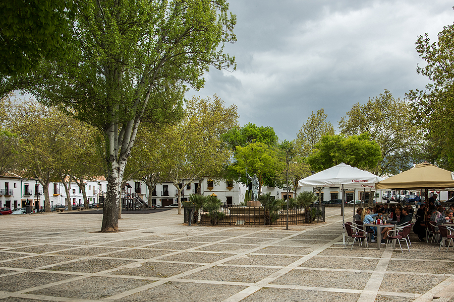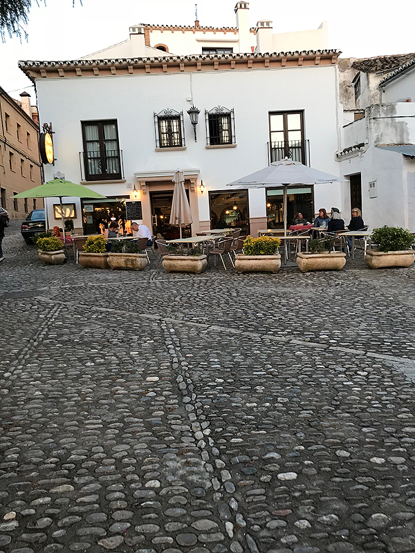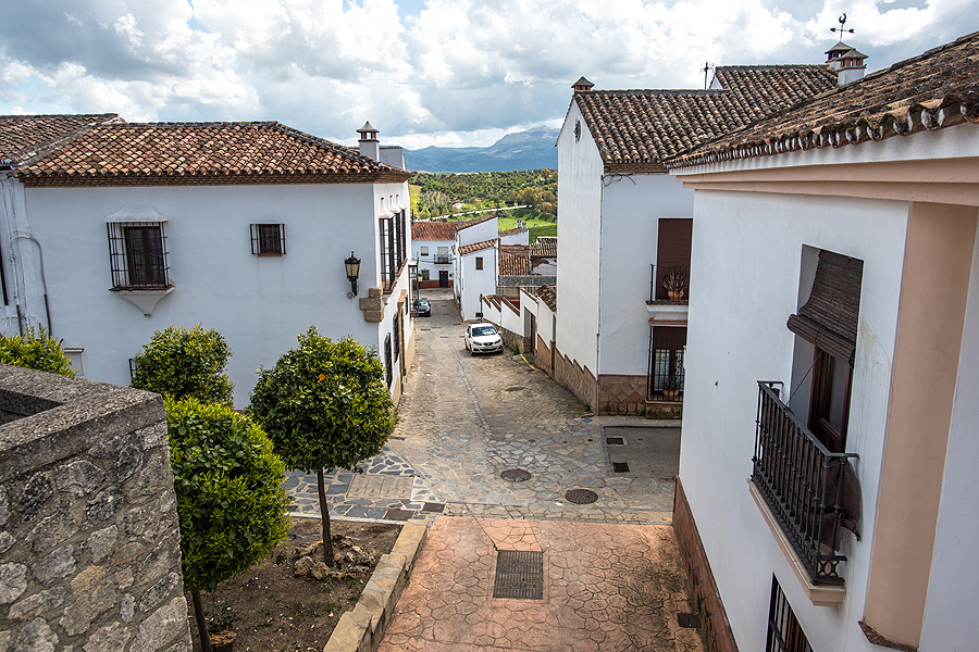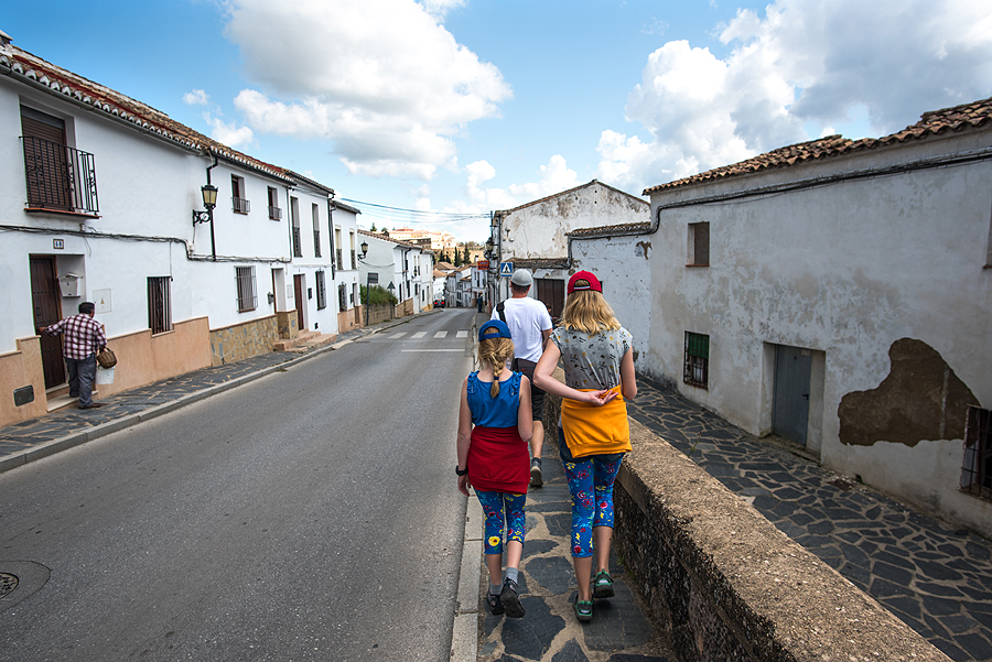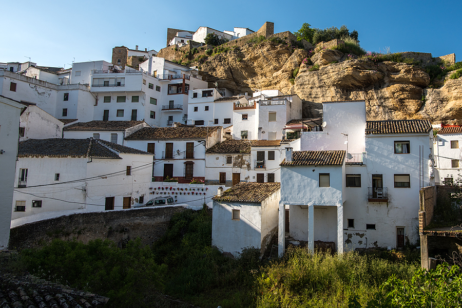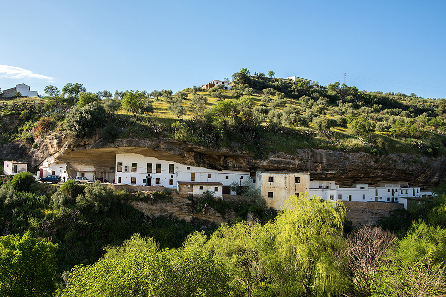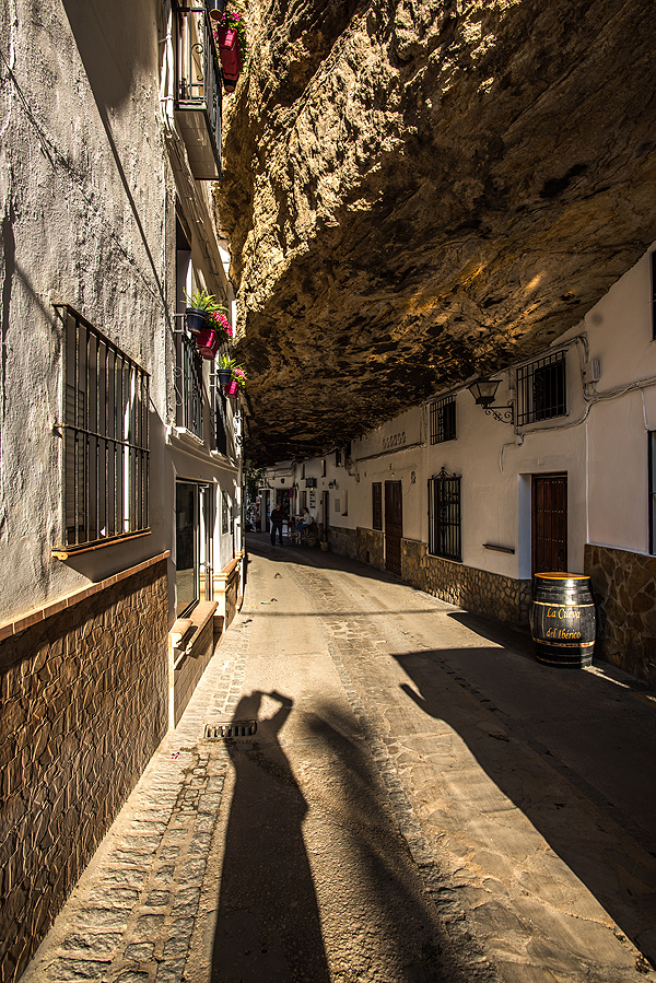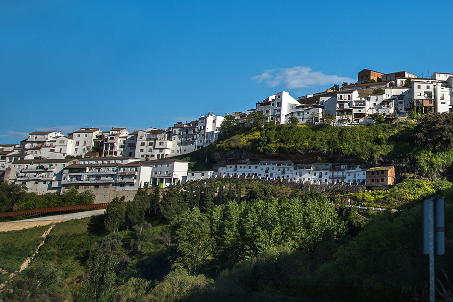Išsivyniojame pagaliau iš namų į gretimai esantį miestelį Setenil de las Bodegas, žymų tuo, kad didžiuliai akmenys kabo virš namų ir net skersai gatvės. Važiuojame dar tuščiomis, lietaus nuplautomis gatvėmis.