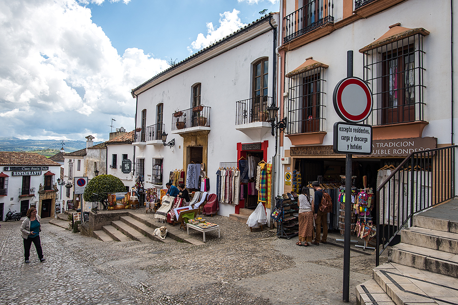 Privažiavę Setenil... sukam ratus aplinkui - jokių ženklų, kur čia tie žymieji akmenys kabo, nėra. Važiuojam didelį aplinkkelį, pravažiuojme Mirador - apžvalgos aikštelę, ir apsukę ratą randame daugiaaukštę stovėjimo aikštelę. Mašinų ten nulis, nuobodžiaujantys vietiniai paaugliai žiūri į mus abejingai, mokam centus už parkingą. Aš jau matau namukus po akmeniu, fotografuoju.
