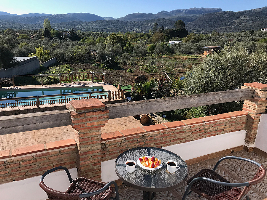 Į Rondą atvažiavome vėlai vakare, apsistojom prieš pat prasidedant miesteliui, tad kitą rytą viskas nauja ir įdomu. Mūsų namuku, kuris vadinasi Alojamiento Rural La Pila, vakar žavėjosi ir vaikai, ir aš - gražus tipiškas andalūzietiškas baltas iš išorės ir dekoruotas akmenimis viduj, begalė gėlių terasoj, erdvūs balkonai ir baseinas... rojus.