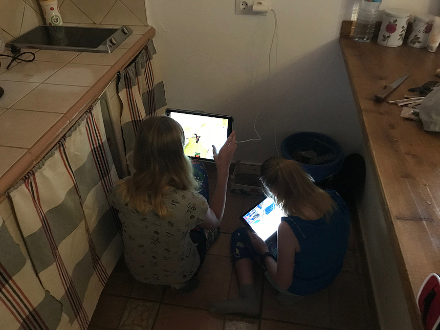 O vaikų - šalia šiukšlių dėžės, nes kitur negali pasikraut planšečių, ir viršuj jom netraukia internetas. Juokdarės.