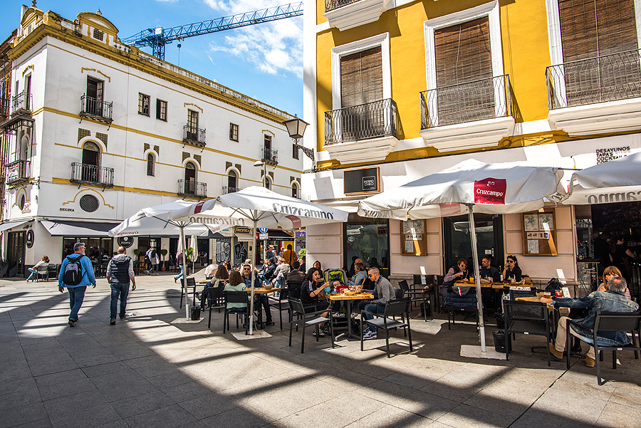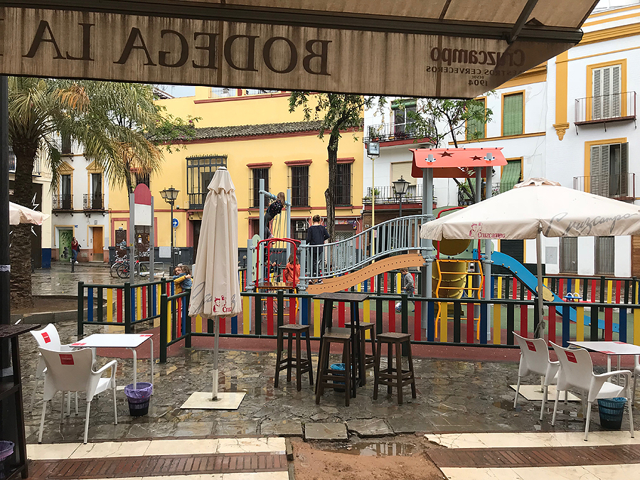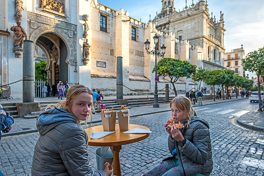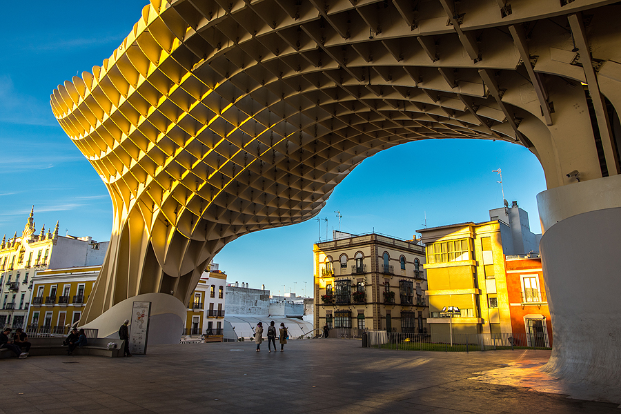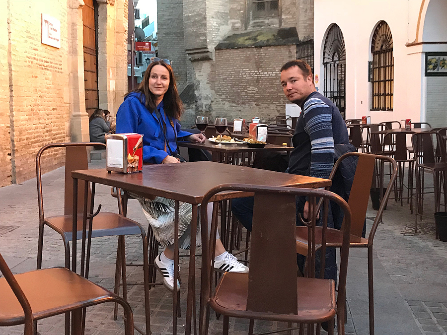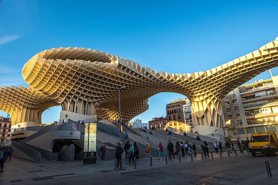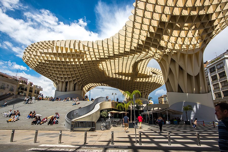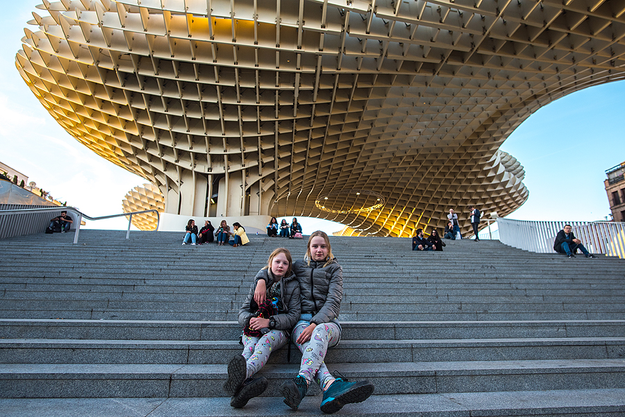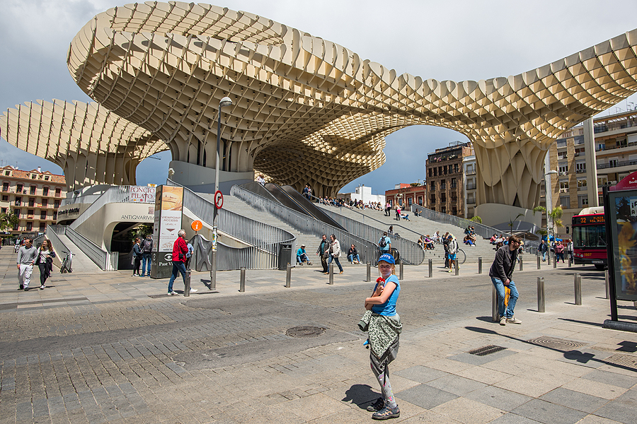 Mirador Parasol - didžiausia medinė skulptūra, pastatyta parodai, Sevilijos "grybas".Įspūdingas statinys iš medžio, viršuje yra apžvalgos takelis, bet mes labai norime kažko užkąst ir pailsėt.