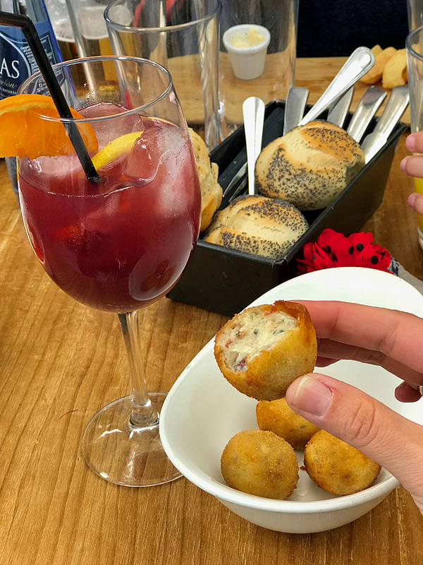 Bariūkštis po tuo įspūdinguoju Mirador Parasol. Bandau sangriją - neee, geriau vynas.