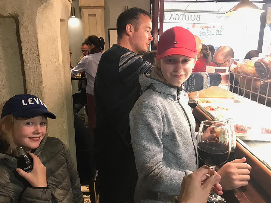 Kol sėdime, pradeda lynoti, tad bandome prisidengę stogeliais slinkti link viešbučio pailsėti prieš vakarą. Einam, einam, visai gaunasi nesušlapus nueiti gabaliuką, kol lietus įsismarkauja, tad neriame į bariuką, kuris sausakimšas. Smagu rast sausą kamputį su vyno taure ir laukti, kol baigsis lietus.