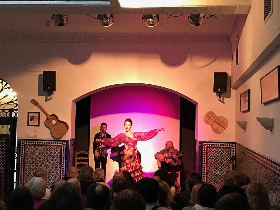 Vakare, pailsėję viešbutyje, vėl einame į miestą, vėl 2 km iki miesto centro, kelią jau beveik žinau atmintinai. Einame į flamenko pasirodymą su vaikais. Vyras griežtai atsisakė. O mums patiko!