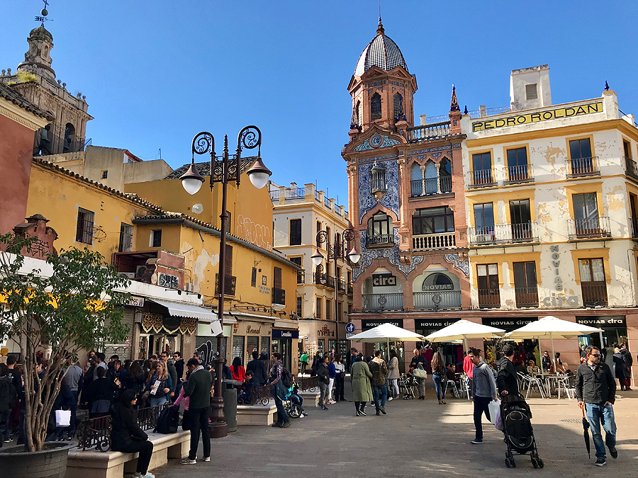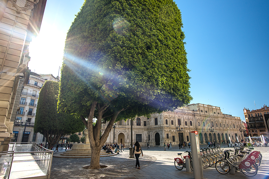 Skaitinėjau apie patį miestą grįžusi - Sevilija vadinama vartais į Ameriką. Dėl to, kad po Kristupo Kolumbo antrosios kelionės į Ameriką 1493metais, kurios tikslas buvo ją kolonizuoti, karalius Pilypas II suteikė Sevilijai prekybos su kolonijomis monopolį. Gvadalkivyro upe laivai iš Bolivijos, Meksikos, Peru veždavo sidabro luitus. Per kelis dešimtmečius Sevilija suklestėjo...