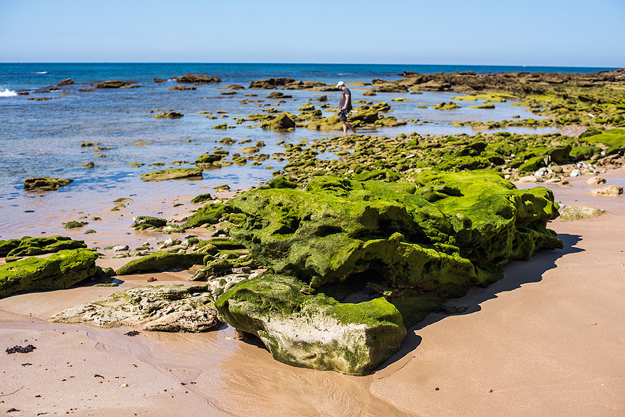 Mes stojame ir einame prie jūros. Mus pasitinka rojaus paplūdimys... Vyrui, turinčiam akvariumą ir besidominčiam jūros gyvūnija, rojus. Man - prijaučiančiai fotografijai taip pat rojus - vaizdų rojus. Net turėjau mažint saturation, tvarkydama foto - spalvos ryškios, tokios ir realybėje...