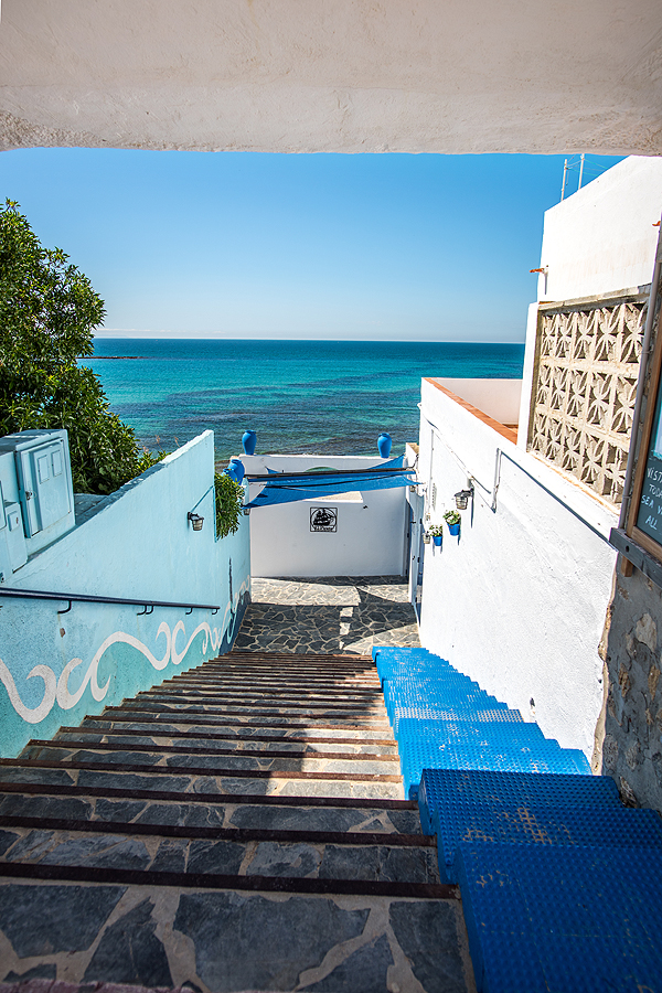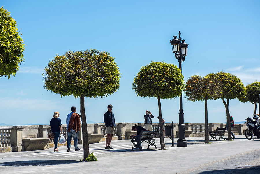 Toliau kylame link miesteliuko Vejer de la Frontera - tikiuosi padaryti gražą foto su baltais namukais aplipusiu kalnu. Deja, privažiuojame ne iš tos pusės. Pravažiuojame pro miestelį, pasirodo be galo jaukus ir mielas. Turistų - nedaug, normaliai, aplinka išpuoselėta, vaizdai nuo kalno, promenada, jaukios gatvelės, ir aikštė, pilna veiksmo. Patinka man tokios vietos. Bet nestojam - noriu dar į vieną vietelę, kurią patarė draugas, ir atsargiai apie tai užsimenu vairuotojui.