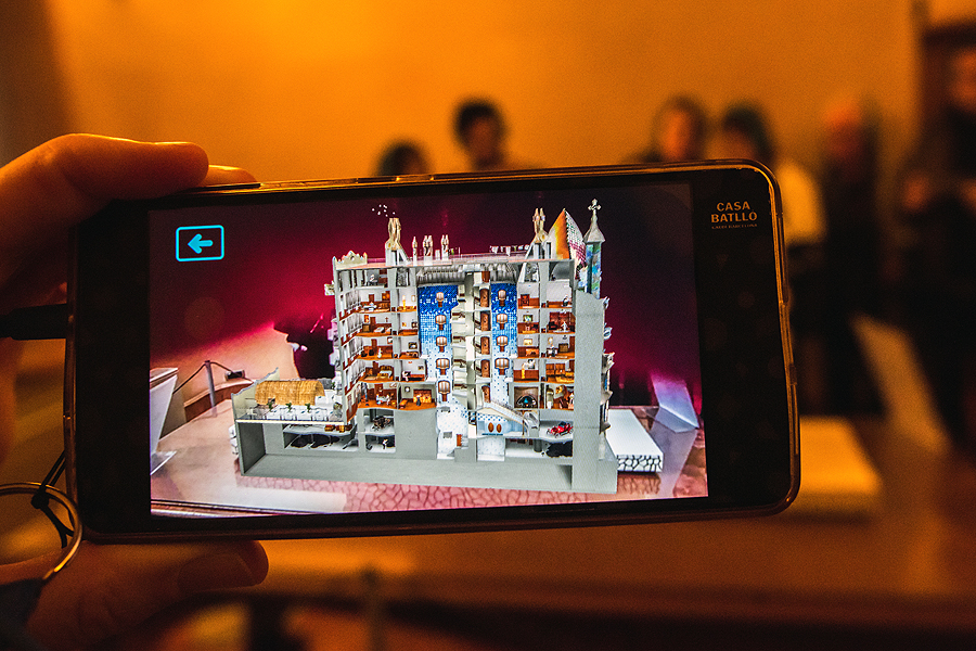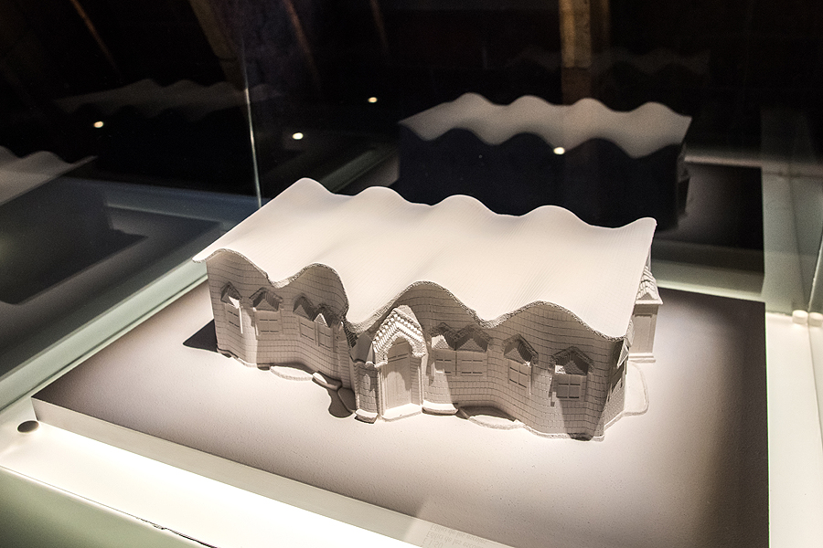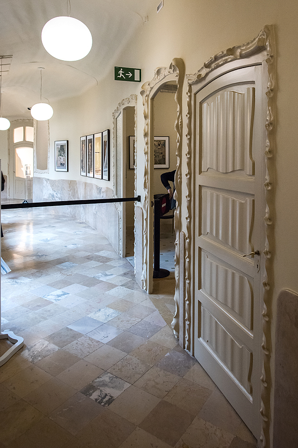 Liftas užkelia į viršutinį aukštą. Jis nemažas, tamsokas, jame eksponuojama architekto žymiausių darbų maketai, taip pat Casa Mila maketas.