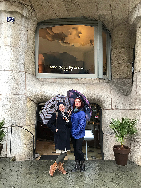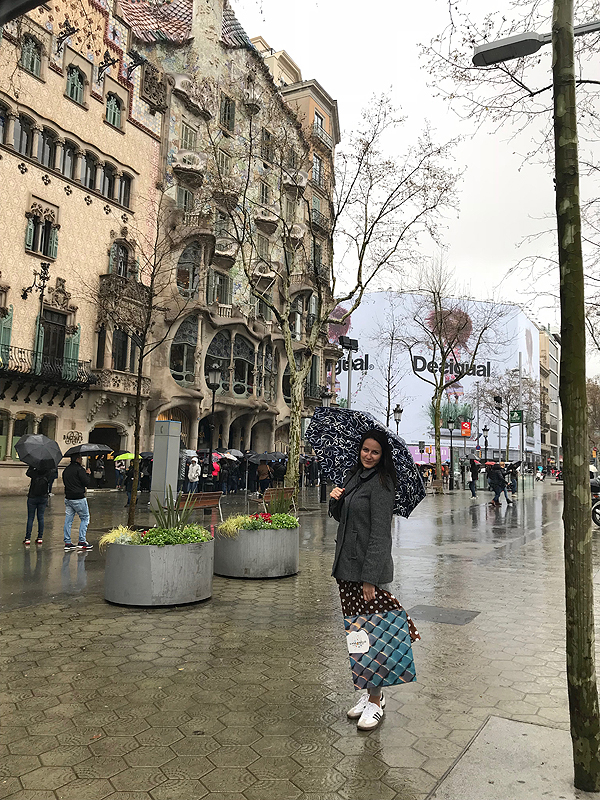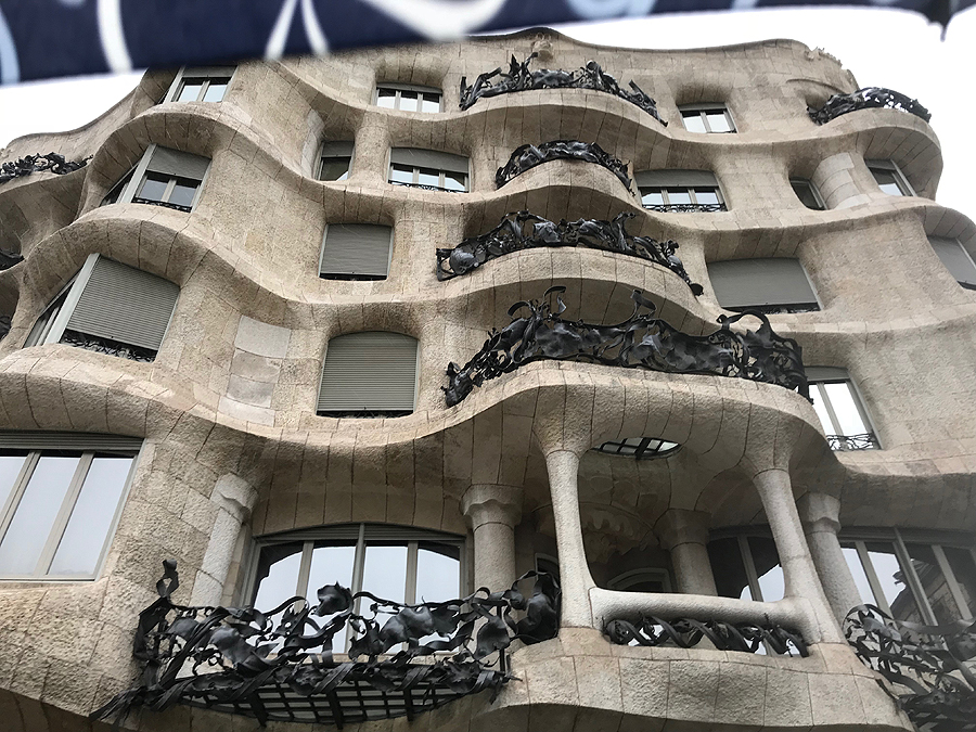 La Pedrera tik taip, iš po skėčio. Visą dieną pliaupia. Bet mes neliūdim.