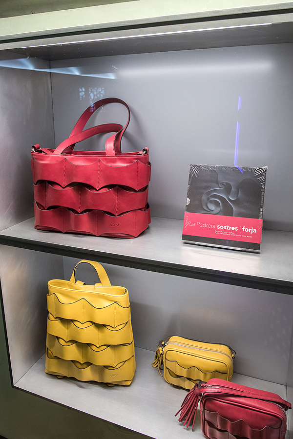 Belaukiant eilėje prie lifto, į akį krenta rankinės - La Pedrera namo motyvais.