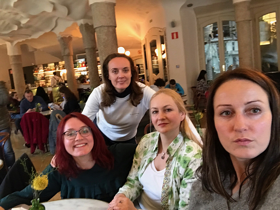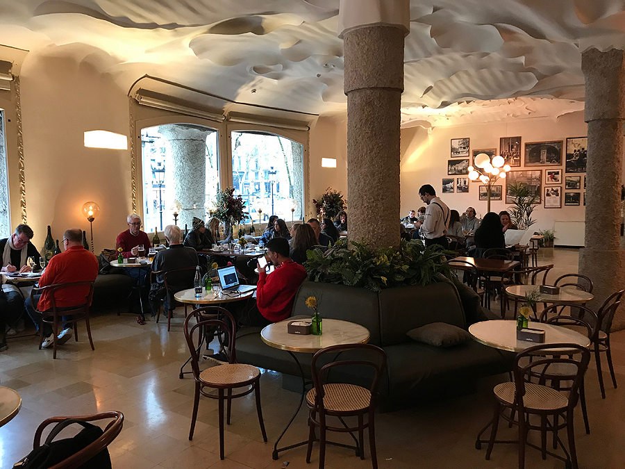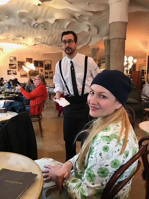 Galų gale yra šansas atsisėst ir pailsėt, o ir pilvas jau maršus groja... tą darom jaukioj La Pedrera namo kavinukėj. Čia foto nusilesusių.