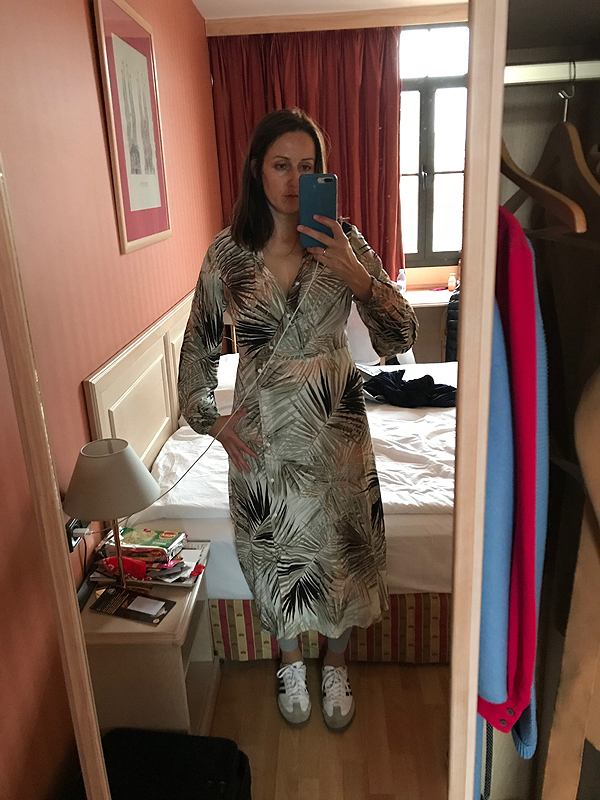 Po kavinukės mes su Elena į viešbutį, o likusios dar po parduotuves. Elena rodo, ką nusipirko, ir man prireikia suknelės. Graži, ką?