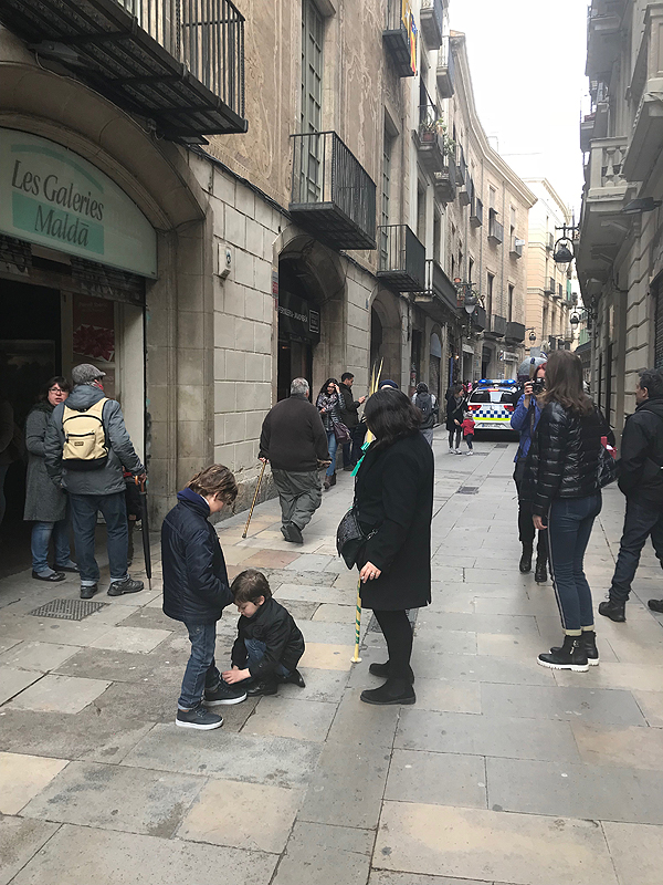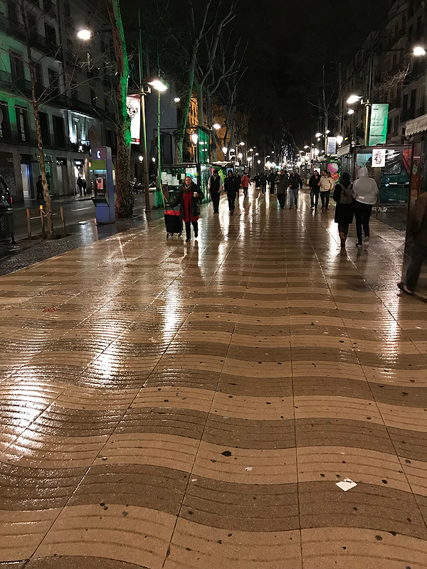 La Rambla nuvylė. Alėja, dar būtų galima užmest akį į gražius aplinkinius pastatus, bet viską užstoja kioskai su suvenyrais ir visokiais šlamštmožiais, daug žmonių, parduotuvių nėra, kaip tikėjausi, visos buriasi La Passage Grazia - centre Zarų ant kiekvieno kampo.