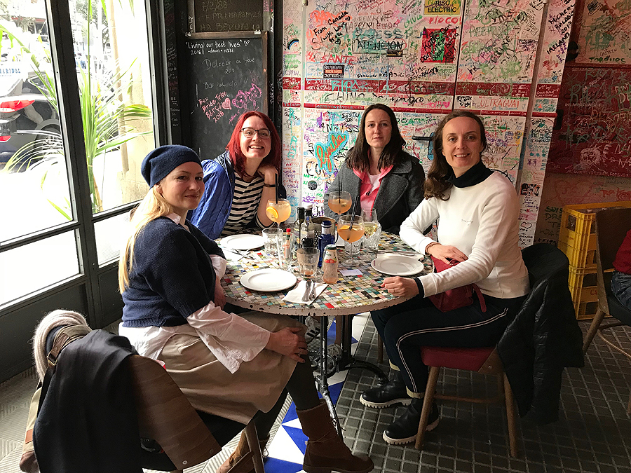 Vis tik galų gale pakilome toliau. Už dvi kavas su pienu ir du espresso paliekam 6 eu.