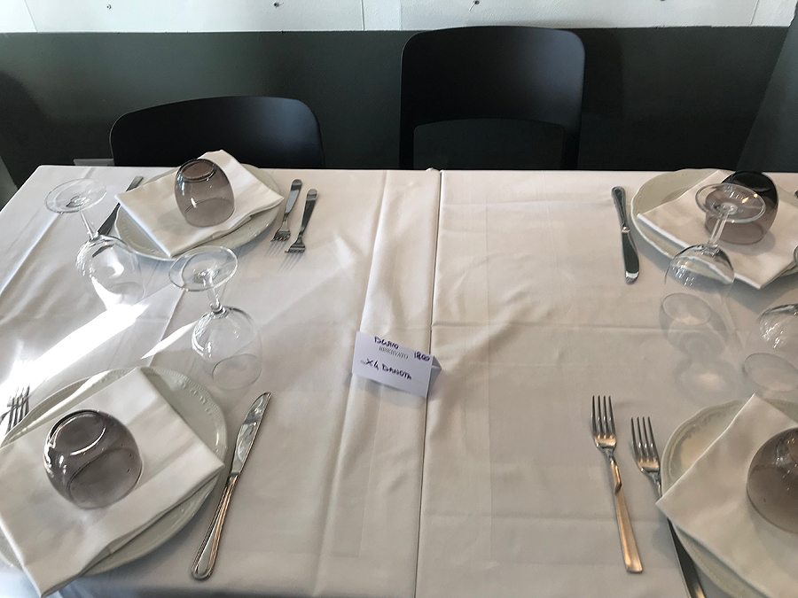 Mūsų vakarienė prasideda, staliukai beveik visi dviviečiai, mums spec sustumia du stalus.