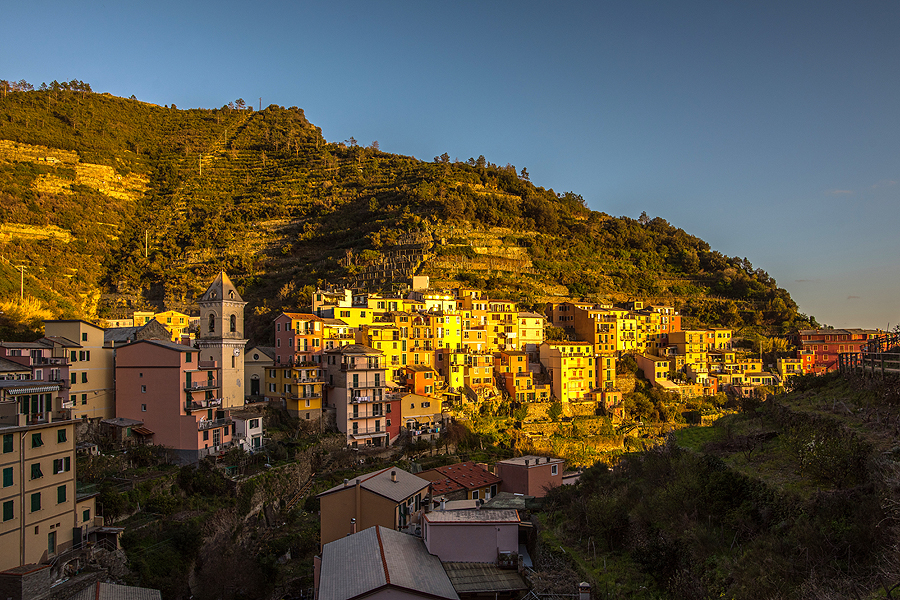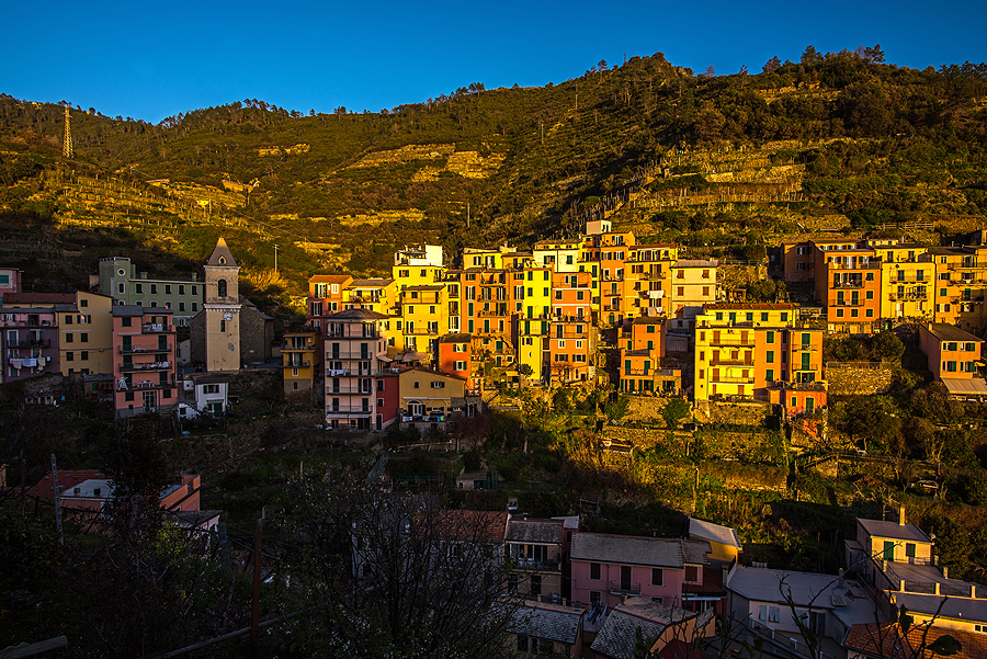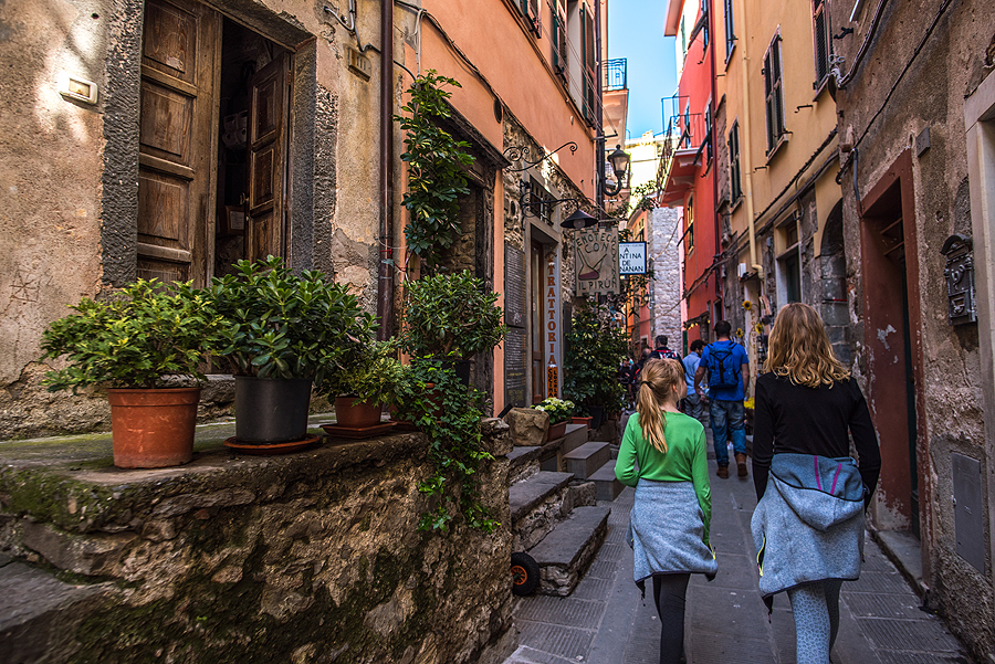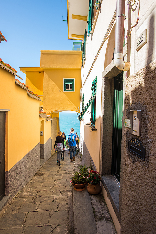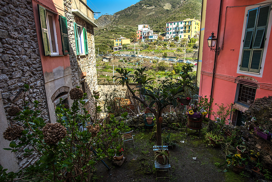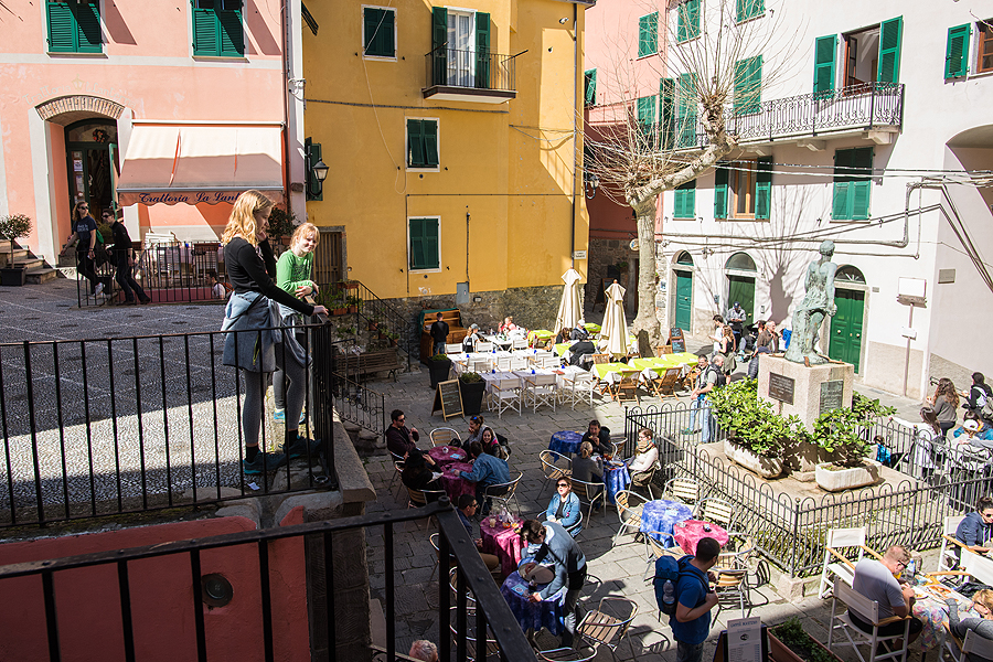 Miestelis mažas, vien tik koridorinės siauros vėsios gatvelės, vaizdai iš jo viršaus žiūrint nieko ypatingo - matosi Manarola, bet ji matėsi ir iš stoties, apačioj.