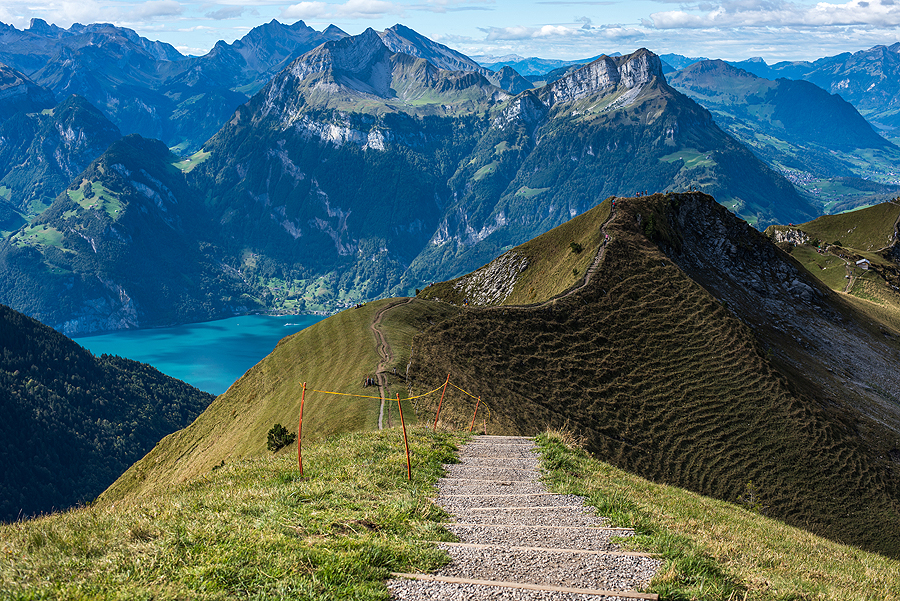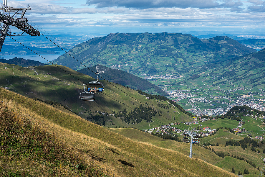 Vat vinguriuoji tokiais takeliais ir mėgaujiesi vaizdais. Matosi Pilatus, Rigi, abi Mythen viršūnės, net apie 10 skirtingų ežerų!