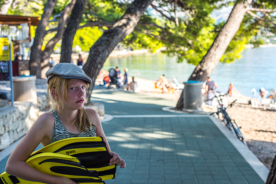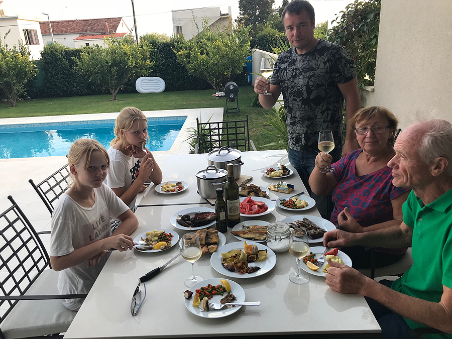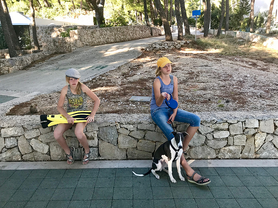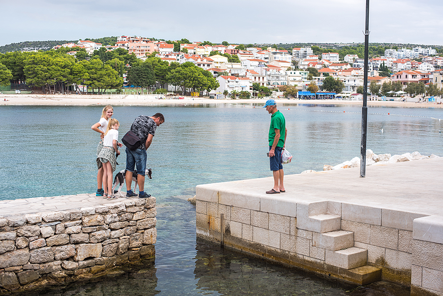 Iš pradžių galvojome keltis į salas ... bet nusprendėm, kad nenorim, pavažinėsim pakrantėmis link Šibeniko. Ryte perkam žuvį turguj - darysimės vakare. Galų gale prigrasinusi atimt planšetes, įgrūdu vaikus į baseiną (pasaulio pabaiga).