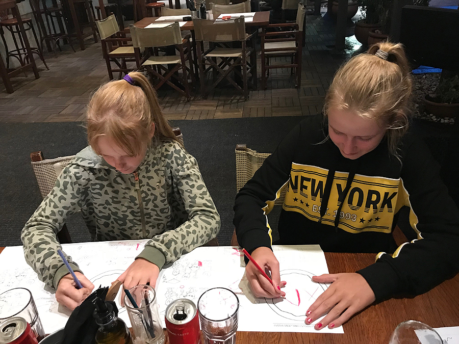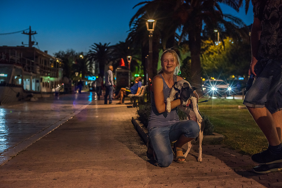Prasiėję promenada, renkamės kur valgyt kitoj gatvės pusėj. Kadangi visi alkani, išsirenkam gan greitai. Sėdim, gurkšnojam naminį vynelį, laukiam maisto, su vyru prisimenam Kanų, St. Tropezo paplūdimius. Mano mėgstamiausias vakarienės laikas.